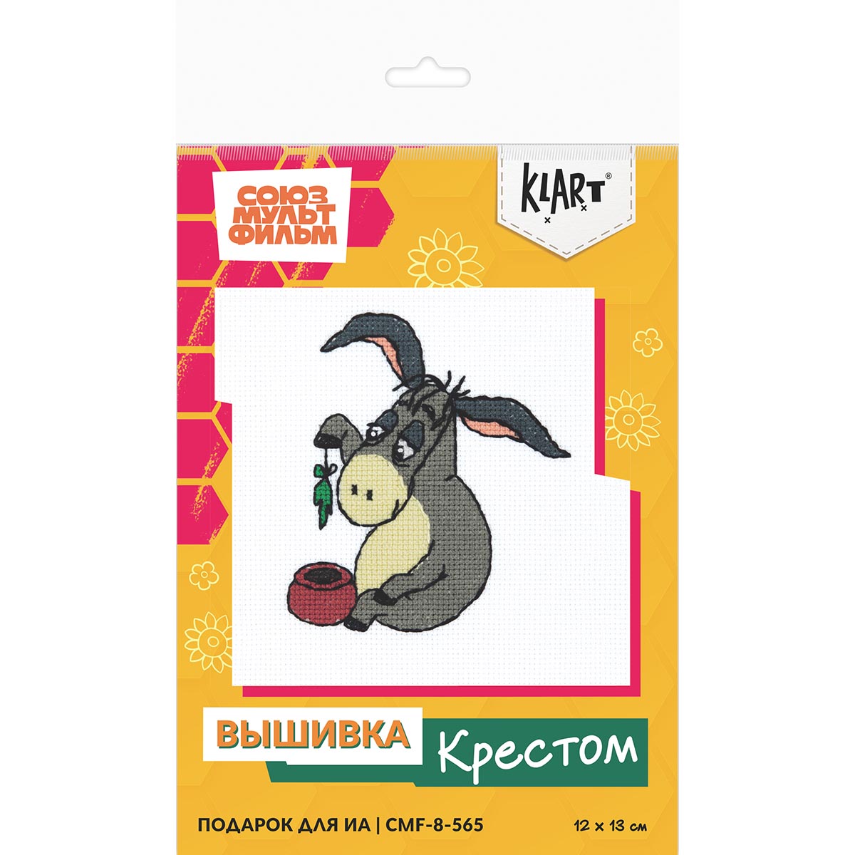 Эксклюзивная серия наборов по лицензии «Союзмультфильм». В набор для вышивания Klart входит: канва Gamma Aida №16, хлопчатобумажные нитки мулине Gamma, игла для вышивания Gamma, ч/б схема с цветными символами, инструкция по вышиванию.