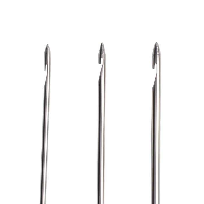 Иглы для люневильского крючка изготовлены из прочного металла, не имеют зазубрин. Высокая острота заточки позволяет быстро захватывать нить и не цеплять ткань.