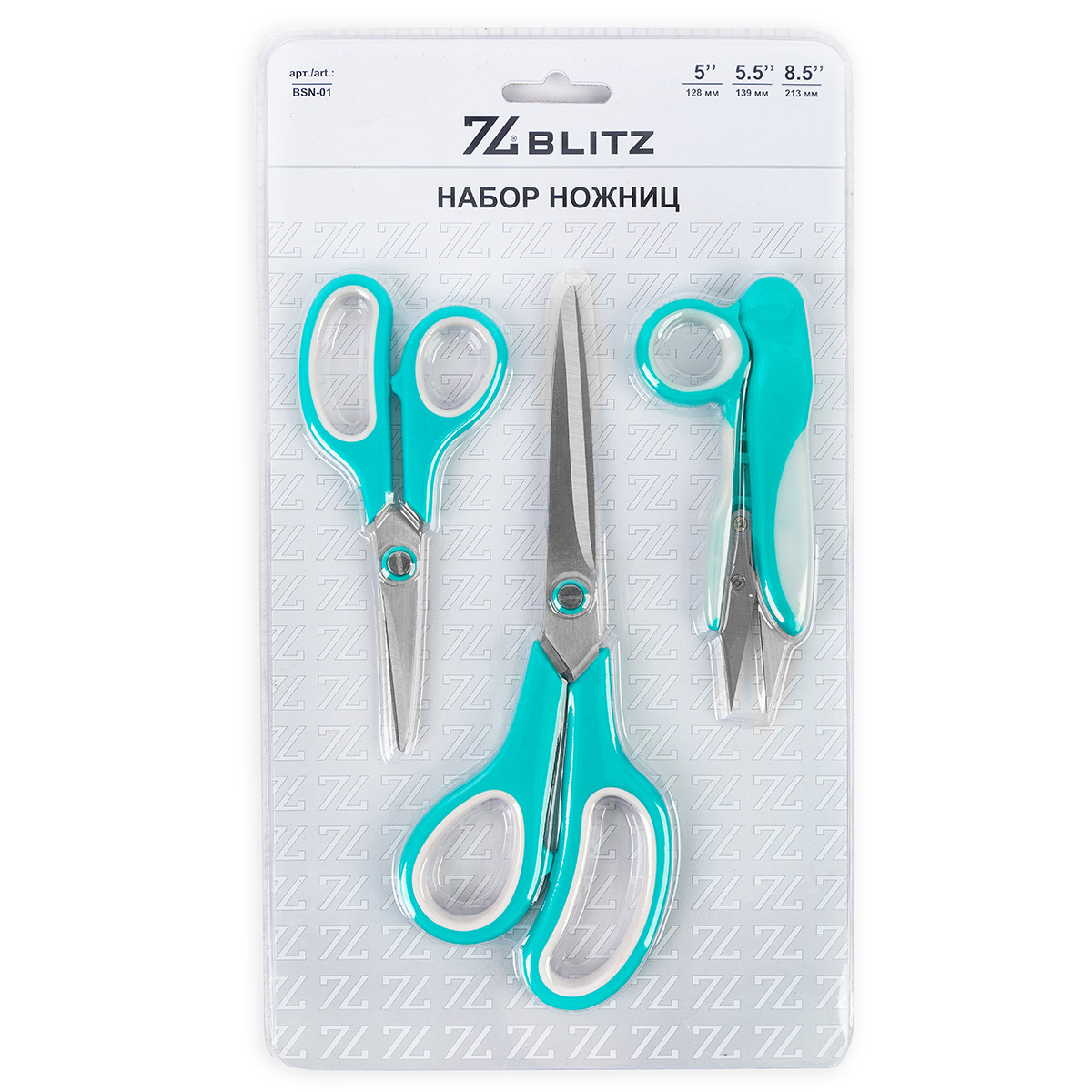 «BLITZ» Набор ножниц BSN-01 используются для шитья и рукоделия. Длина лезвия и форма ручек удобна для кроя и рукоделия. В набор входят: универсальные ножницы 2 шт и ножницы для обрезания ниток.