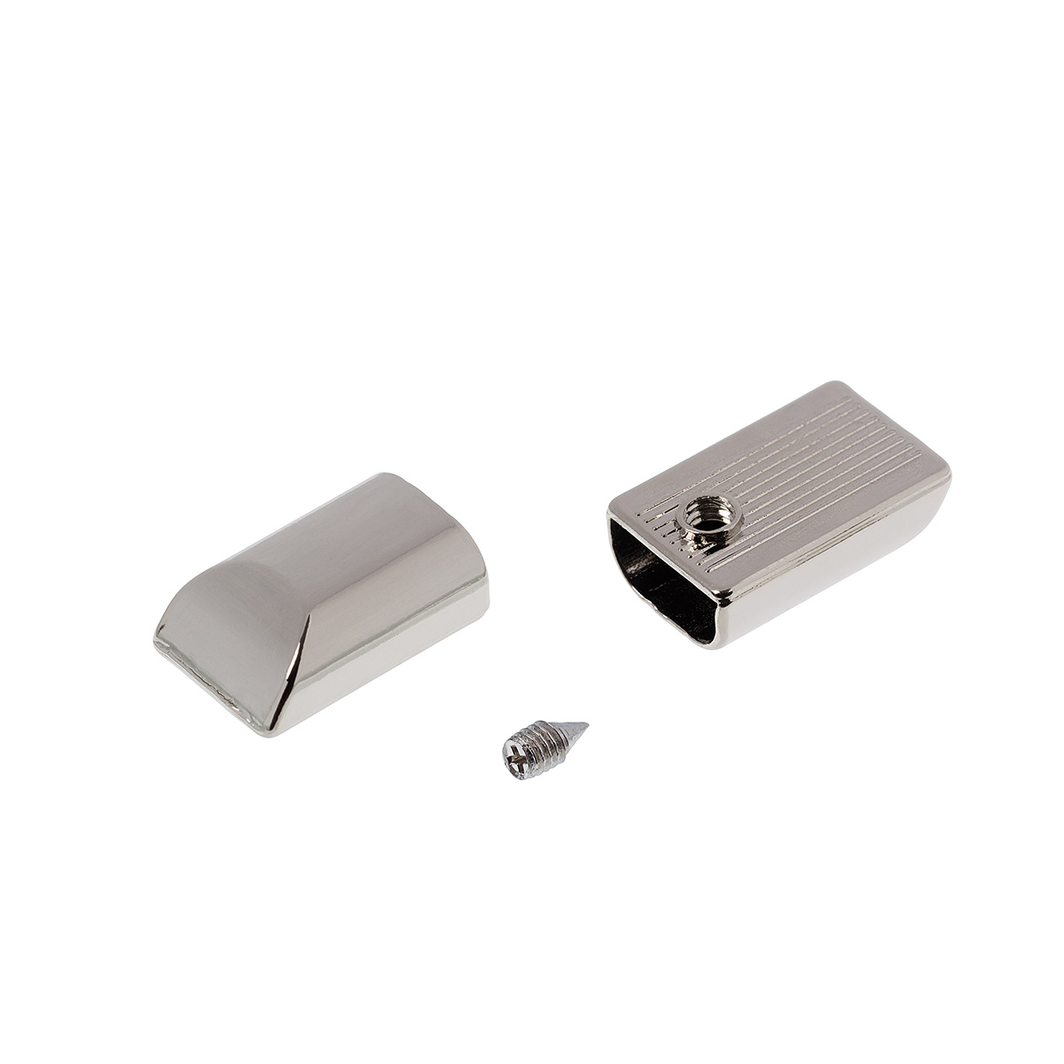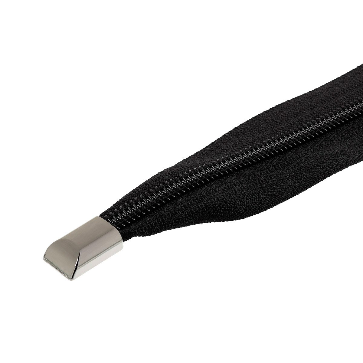 Наконечник металлический для молний. Наконечник используется для предотвращения расхождения молнии и надежно фиксирует ее звенья. Придает вшитой рулонной молнии красивый и законченный вид. Послужит также декоративным элементом. Наконечники изготовлены из прочного сплава цинка, имеют блестящую поверхность. Применяется для шитья сумок и рюкзаков, может использоваться и для ремней.
