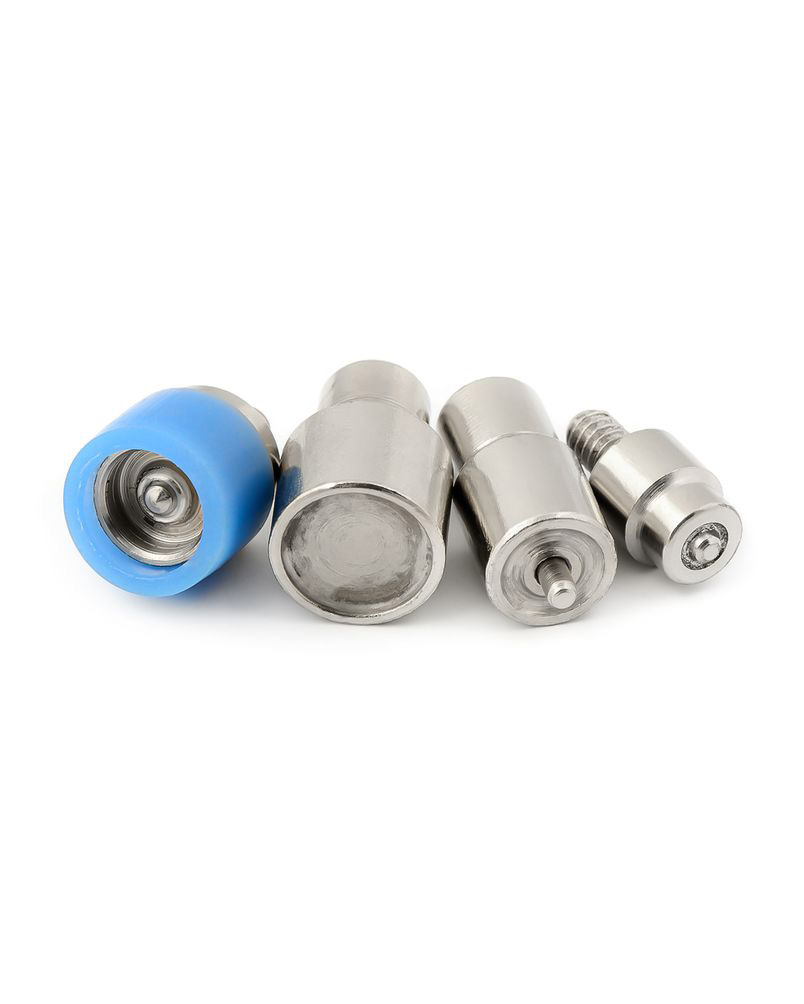 Установку швейной фурнитуры значительно облегчают прессы. Мастера используют пресс для установки хольнитенов, люверсов, кнопок. Для выполнения полного цикла операций к прессу нужны дополнительные инструменты: пробойники, подставки, насадки разного диаметра и для каждого вида фурнитуры. Для установки кнопок №61 (или кольцевых кнопок) понадобится насадка, состоящая из четырех частей. Кнопки широко применяются при производстве обуви, сумок, одежды. Это кнопки, у которых система замка в виде кольца. Кнопка состоит из двух частей и собираются части отдельно. Сначала на прессе при помощи двух насадок собирается и крепится к ткани верхняя часть кнопки, затем — нижняя. Процесс достаточно трудоёмкий, требует аккуратности и точности. Насадка № 61 для пресса подходит для кольцевых кнопок самого популярного диаметра 15 мм.