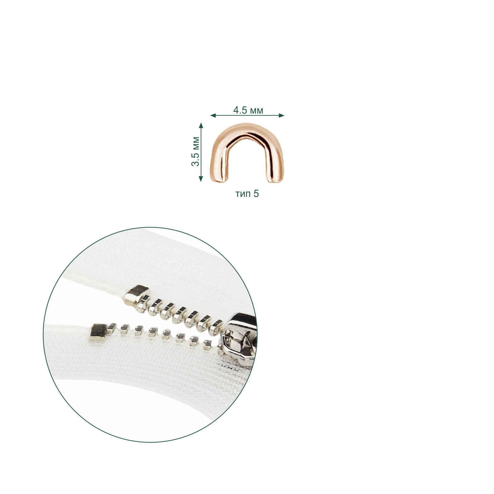 Назначение: верхний ограничитель для металлической молнии