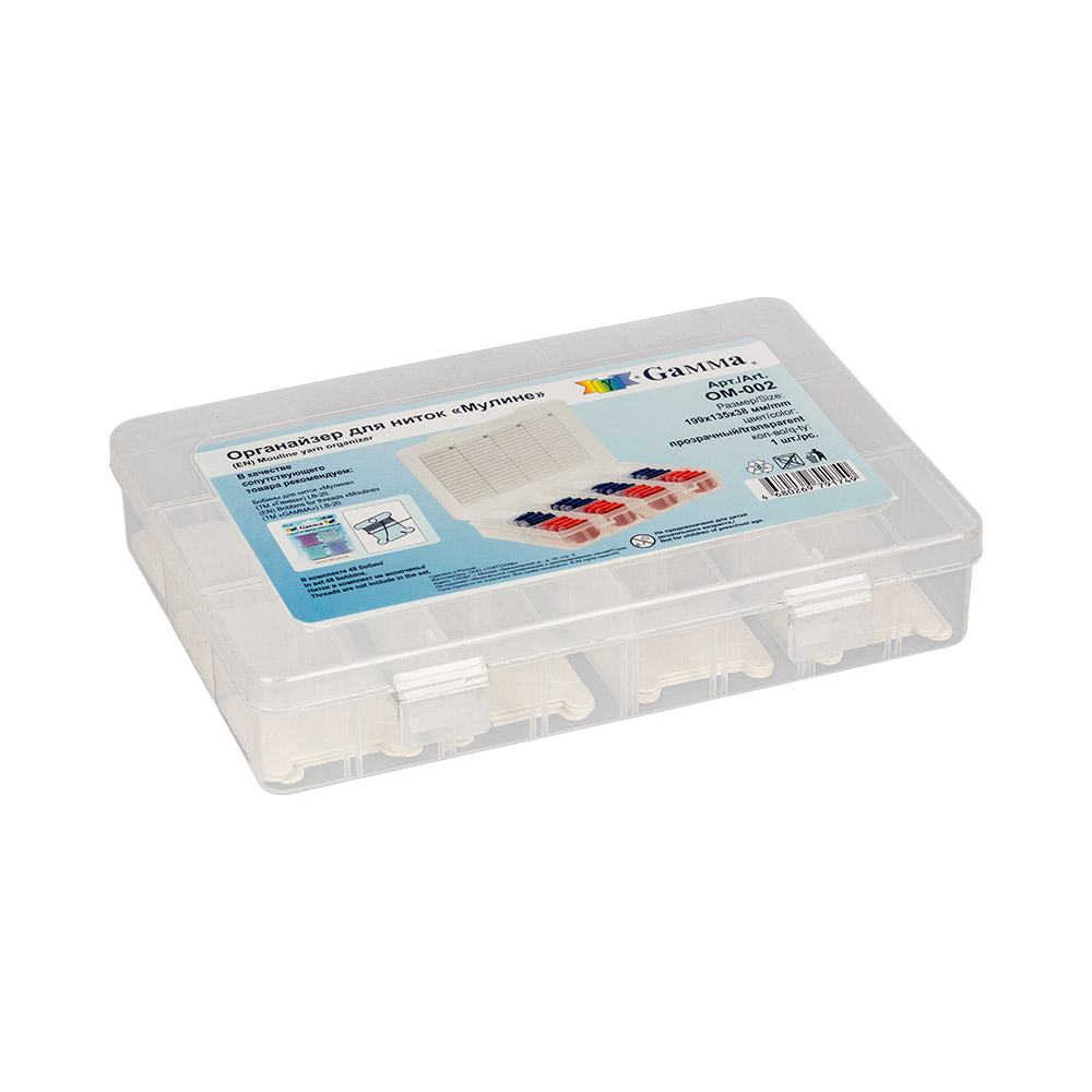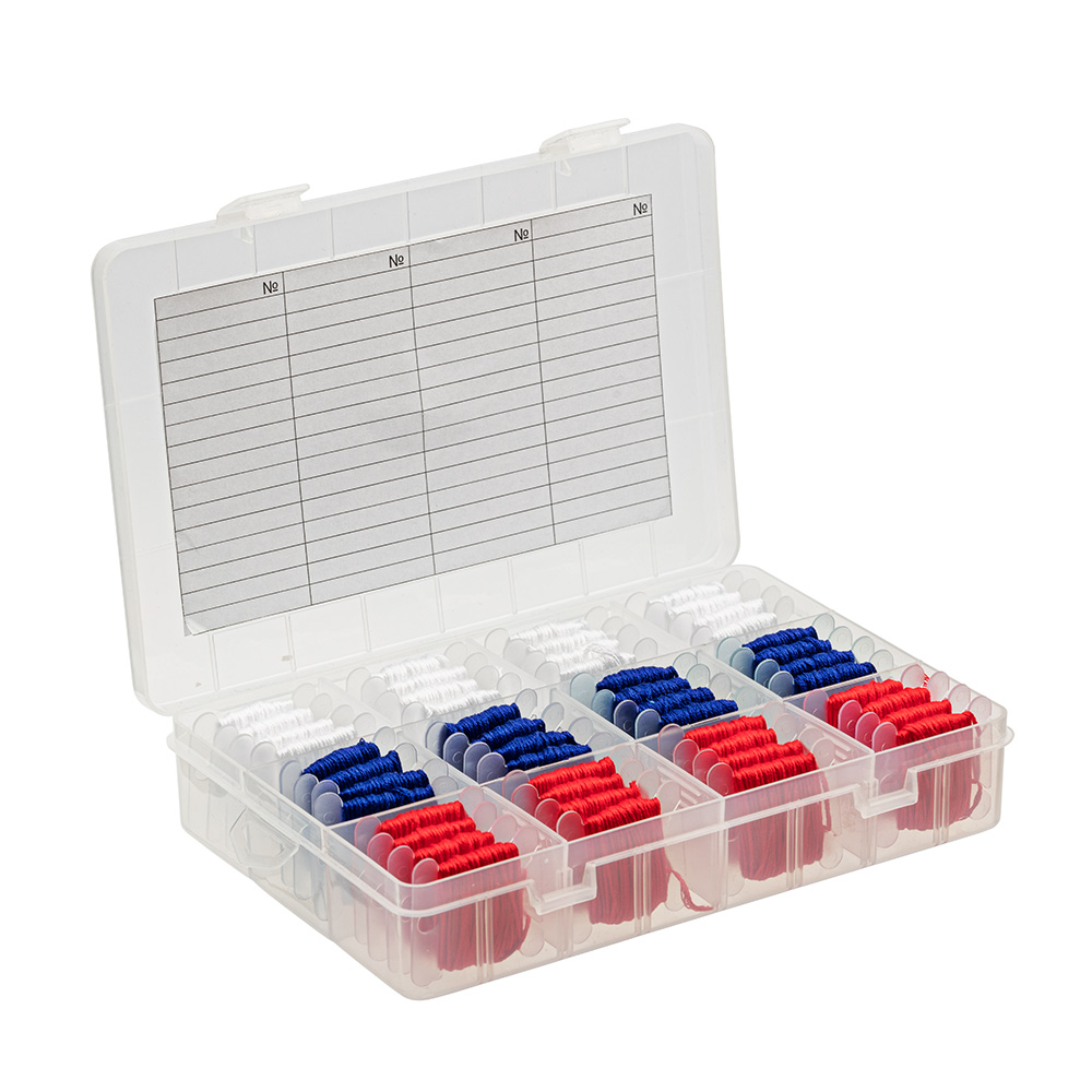 Органайзер для мулине секционный прямоугольный со съемной защелкивающейся крышкой, перегородки внутри можно устанавливать самостоятельно, формируя от 3 до 12 секций, предназначается для хранения бисера, бусин и прочих мелочей для рукоделия и шитья, вмещает в себя до 60 бобин. В комплекте 48 картонных бобин для мулине. Нитки в комплект не входят. Размеры коробки: 13.5 х 19.9 х 3.8 см.