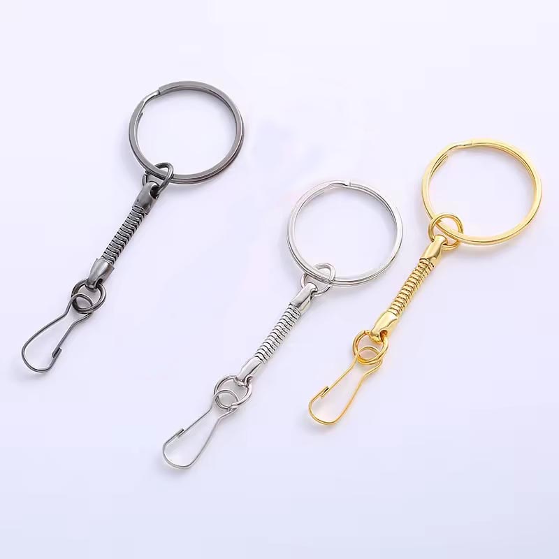 Основа для брелока (брелка) трех цветов. Двойное кольцо, в качестве дополнительного декора — цепочка.