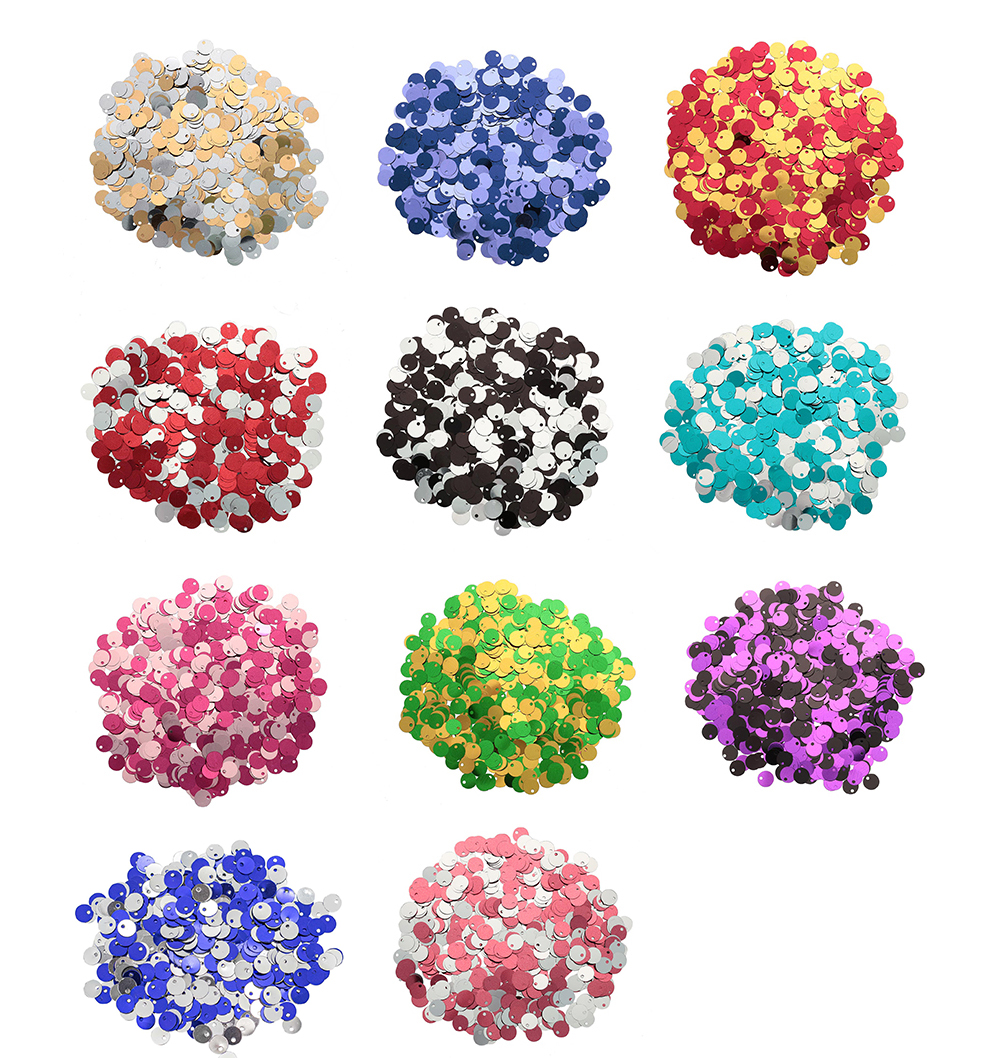 Плоские пайетки круглой формы со смещенным отверстием для нити. Размер 6 мм. Упаковка 10 г. Изготовлены из высококачественного пластика. Представлены различные цвета с эффектом фольгирования. В ассортименте пайетки одного цвета с двух сторон, а также двухцветные.