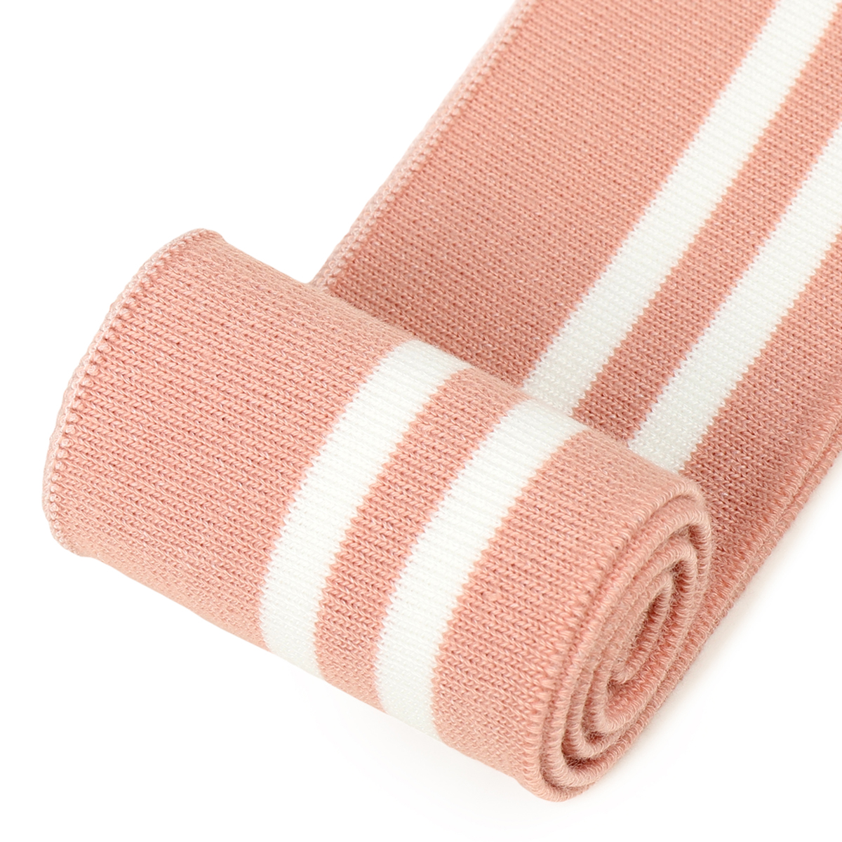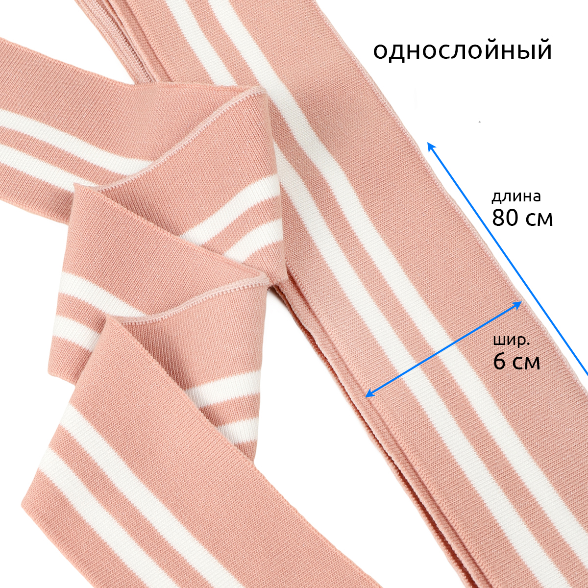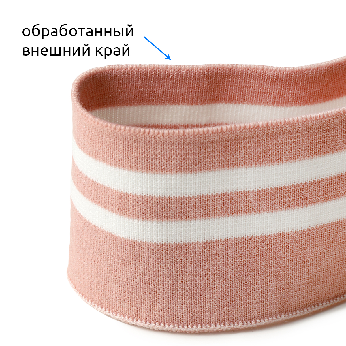 Подвяз трикотажный полиэстер пыльно-розовый с белыми полосами