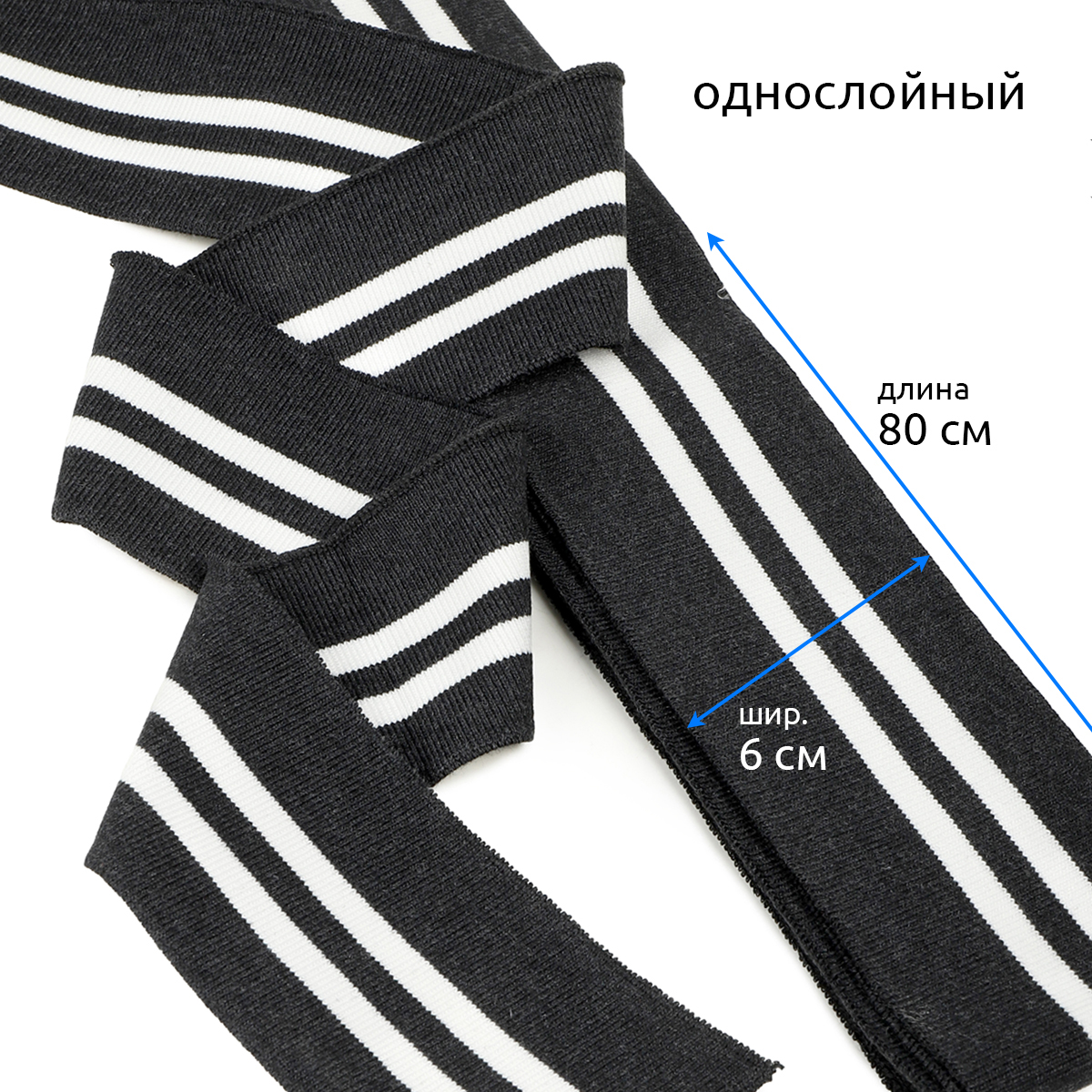 Подвяз трикотажный полиэстер т.серый с белыми полосами