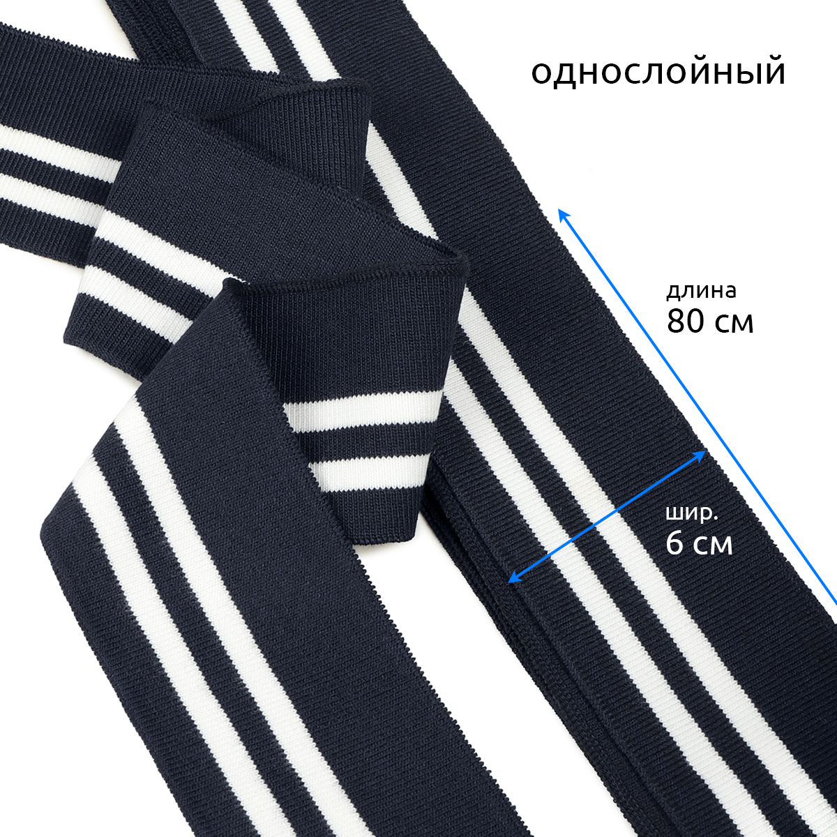 Подвяз трикотажный полиэстер т.синий с белыми полосами