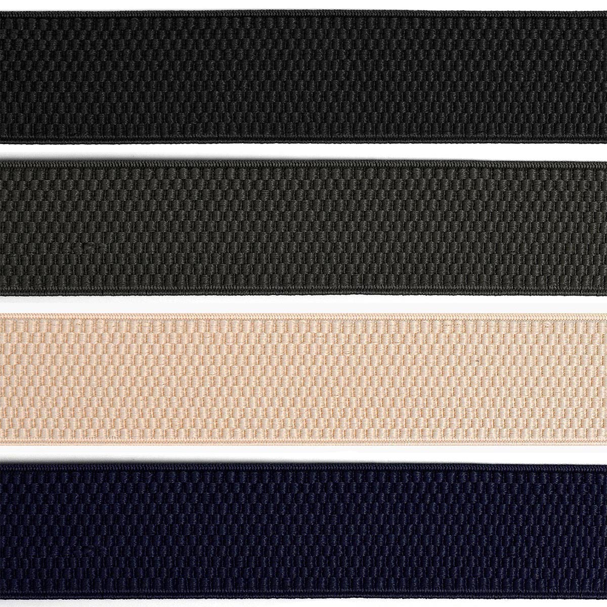 Она более упругая с небольшим блеском нитей, при этом приятная на ощупь, край обработан особым образом в виде канта, что позволяет использовать ее и как декоративную, и как техническую резинку (для поясов, подтяжек, в изготовлении спецодежды и мебели)