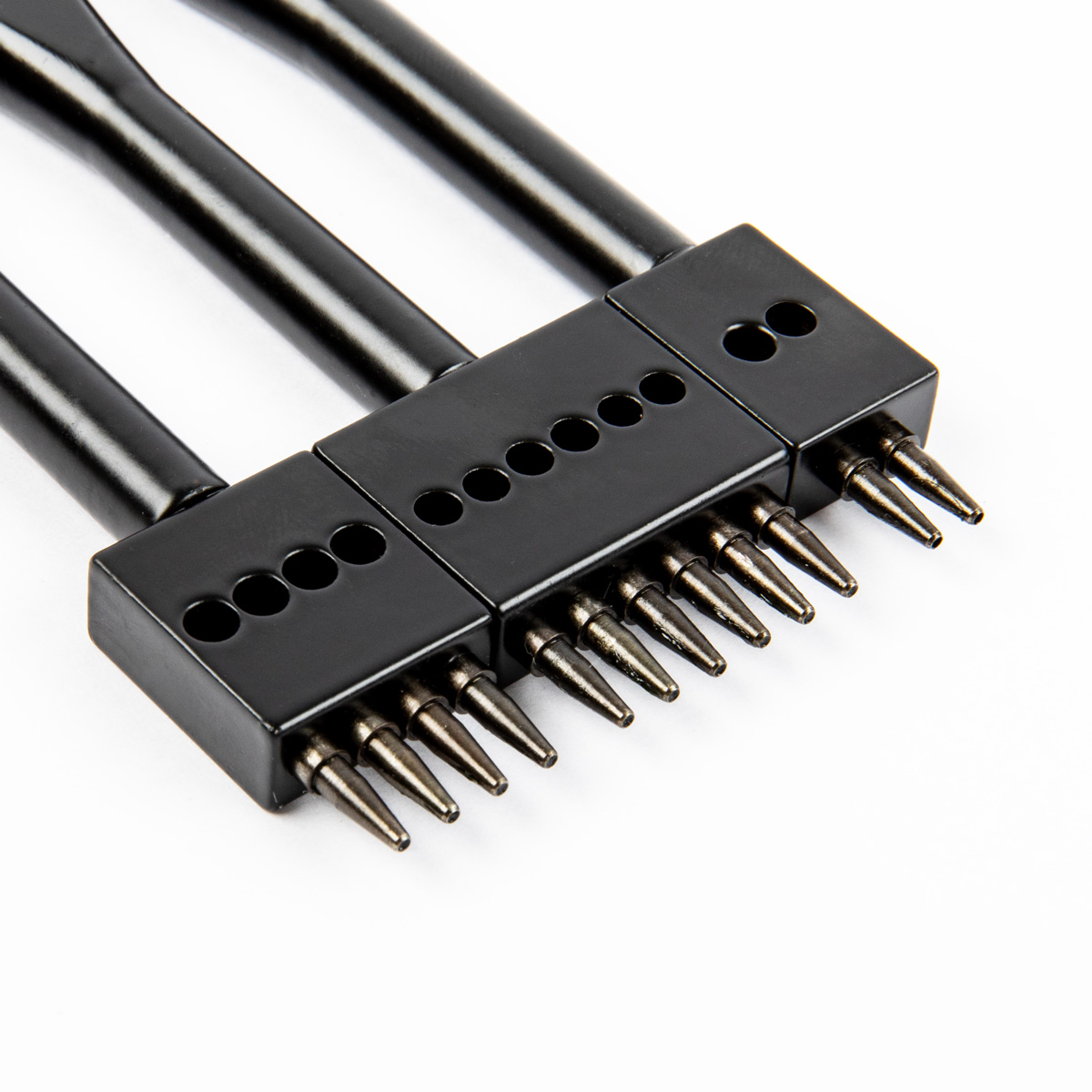 В наборе 3 пробойника с круглыми зубцами: 2, 4, 6 зубцов.