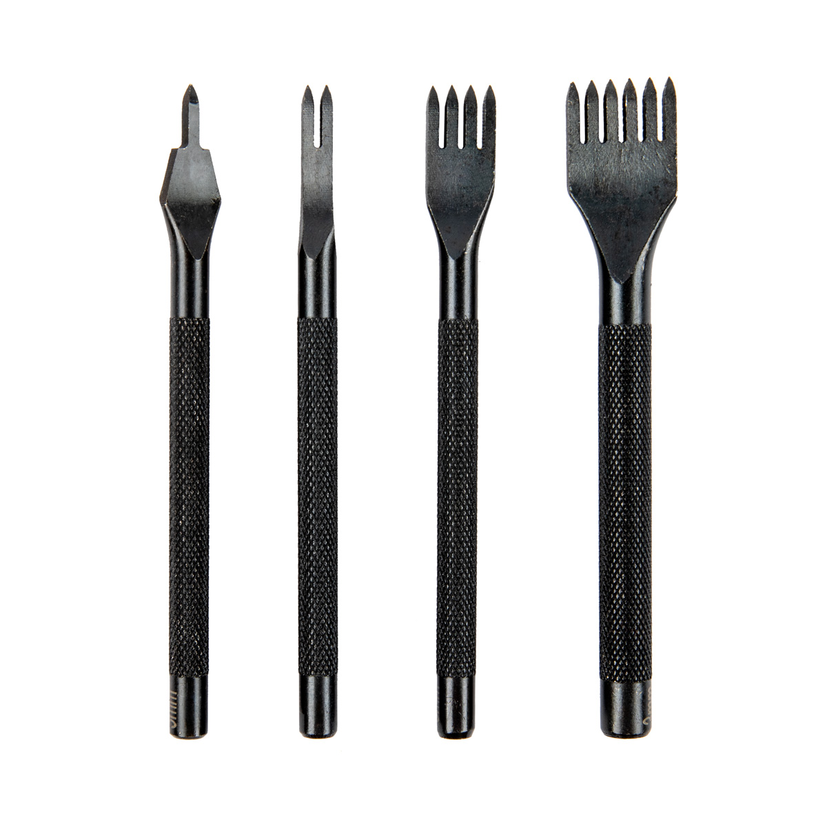 В набор входят 4 пробойника с ромбовидными зубцами:1, 2, 4, 6 зубцов.