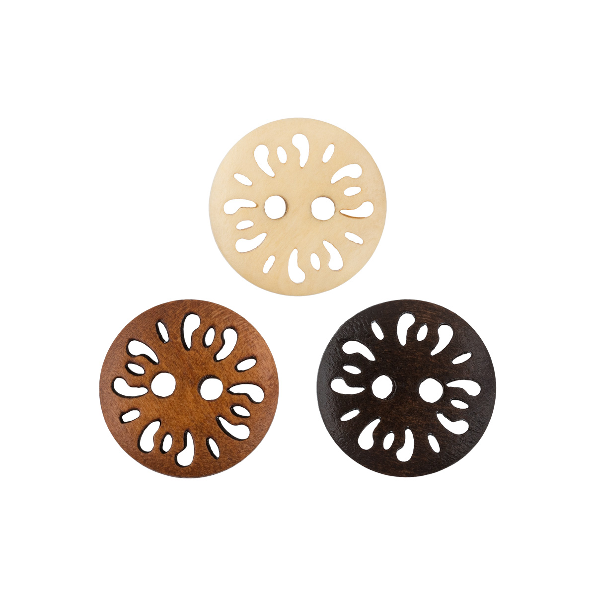 Деревянные пуговицы ТМ «BLITZ», на 2 прокола, круглой формы, диаметром 15 мм.