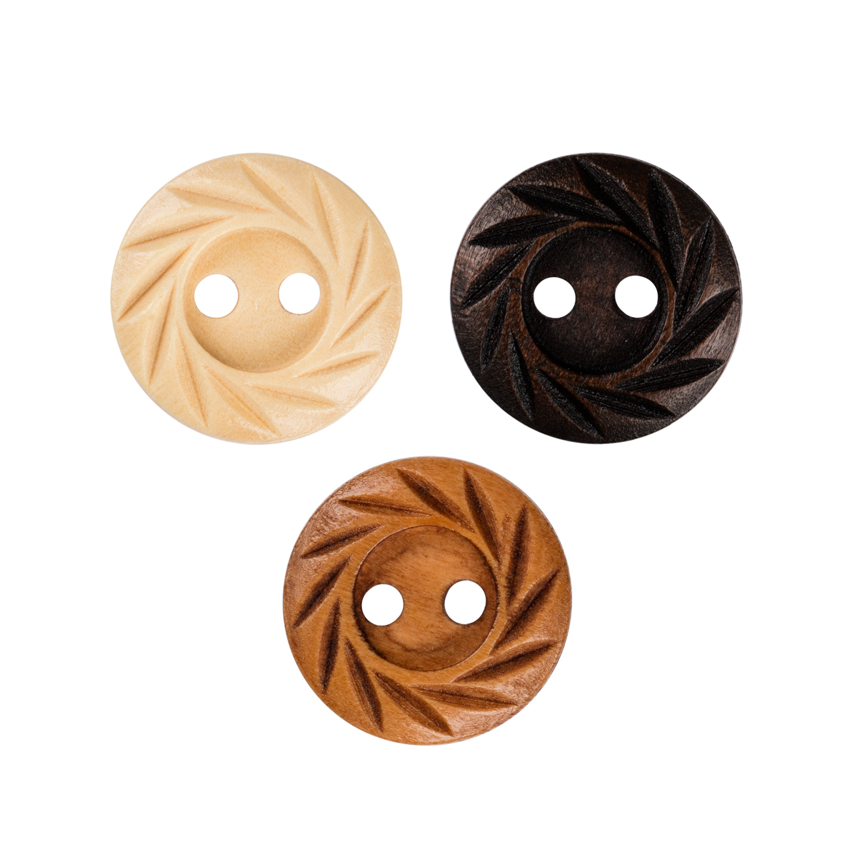 Деревянные пуговицы ТМ «BLITZ», на 2 прокола, круглой формы, диаметром 15 мм.