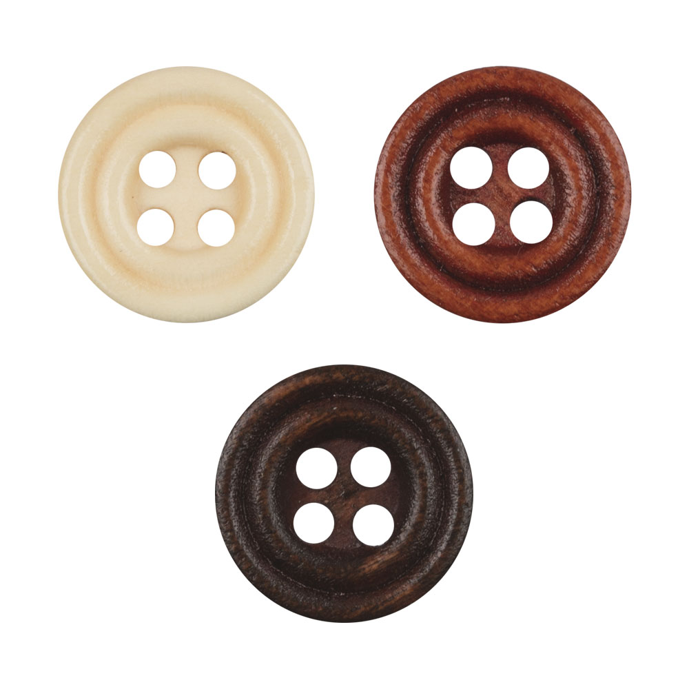 Великолепные пуговицы для пошива костюмов, я бы оценила на 5+. Они легко прокалываются и не ломаются при вытягивании, размер типичный для деревянных пуговиц, и концентрические круги придают им настоящий характер.