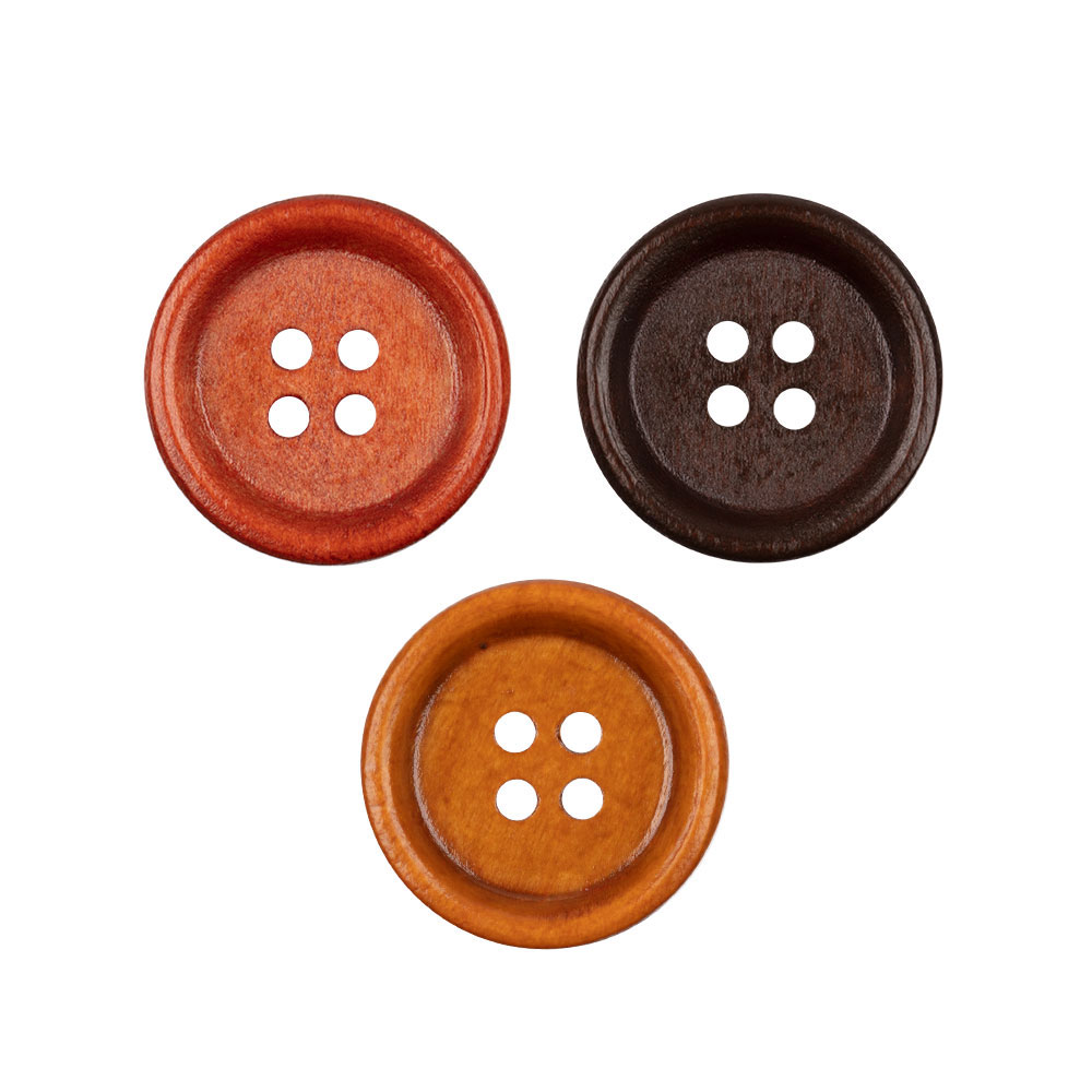 Деревянные пуговицы ТМ «BLITZ», артикул: DRN 0001, на 4 прокола, круглой формы, диаметром 11 мм.