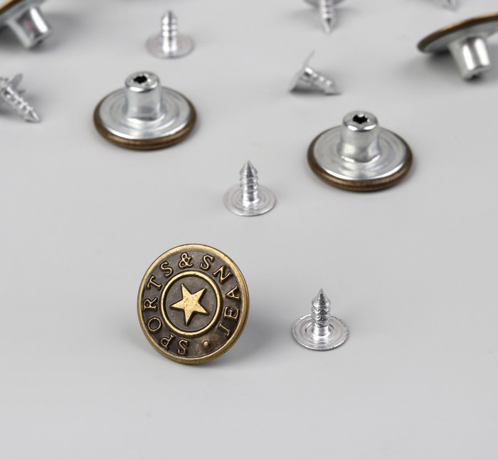 Пуговица джинсовая круглая с рельефной поверхностью, крепится на ткань через прокол маленьким саморезом.