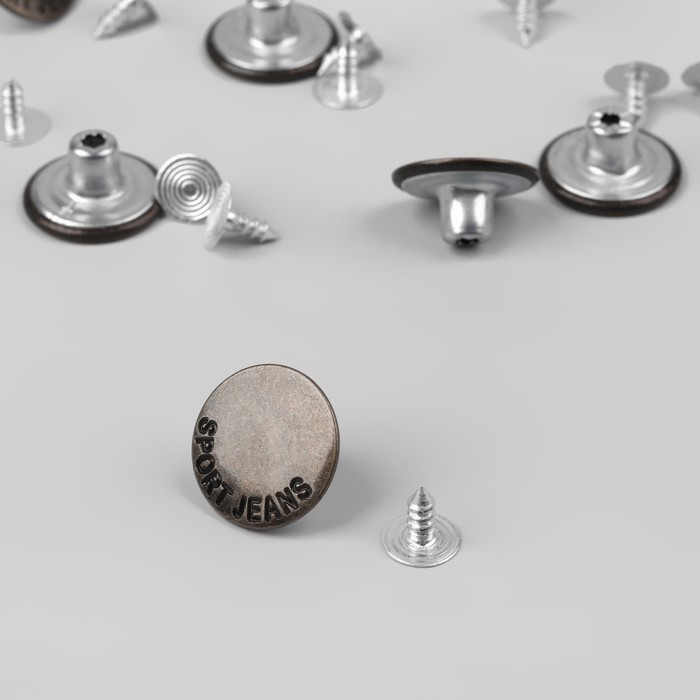 Пуговица джинсовая круглая с рельефной поверхностью, крепится на ткань через прокол маленьким саморезом.