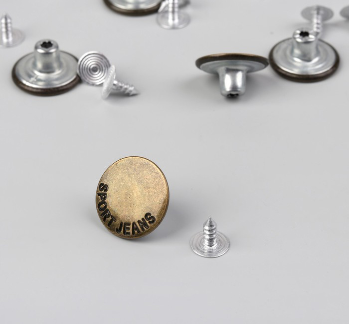 Пуговица джинсовая круглая с рельефной поверхностью, крепится на ткань через прокол маленьким саморезом.