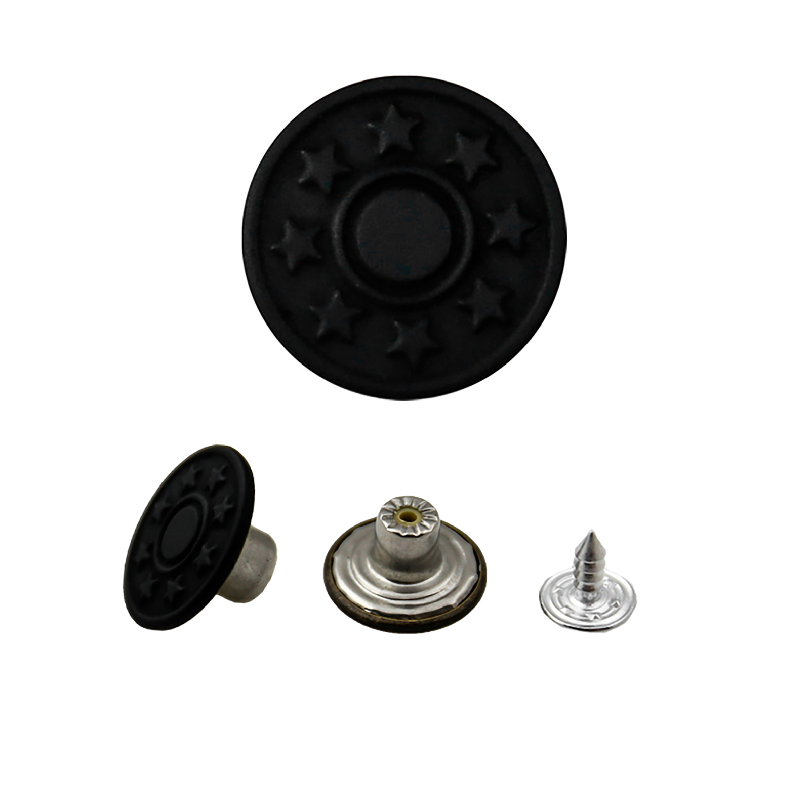 Пуговица джинсовая круглая с рельефной поверхностью, крепится на ткань через прокол маленьким саморезом.
