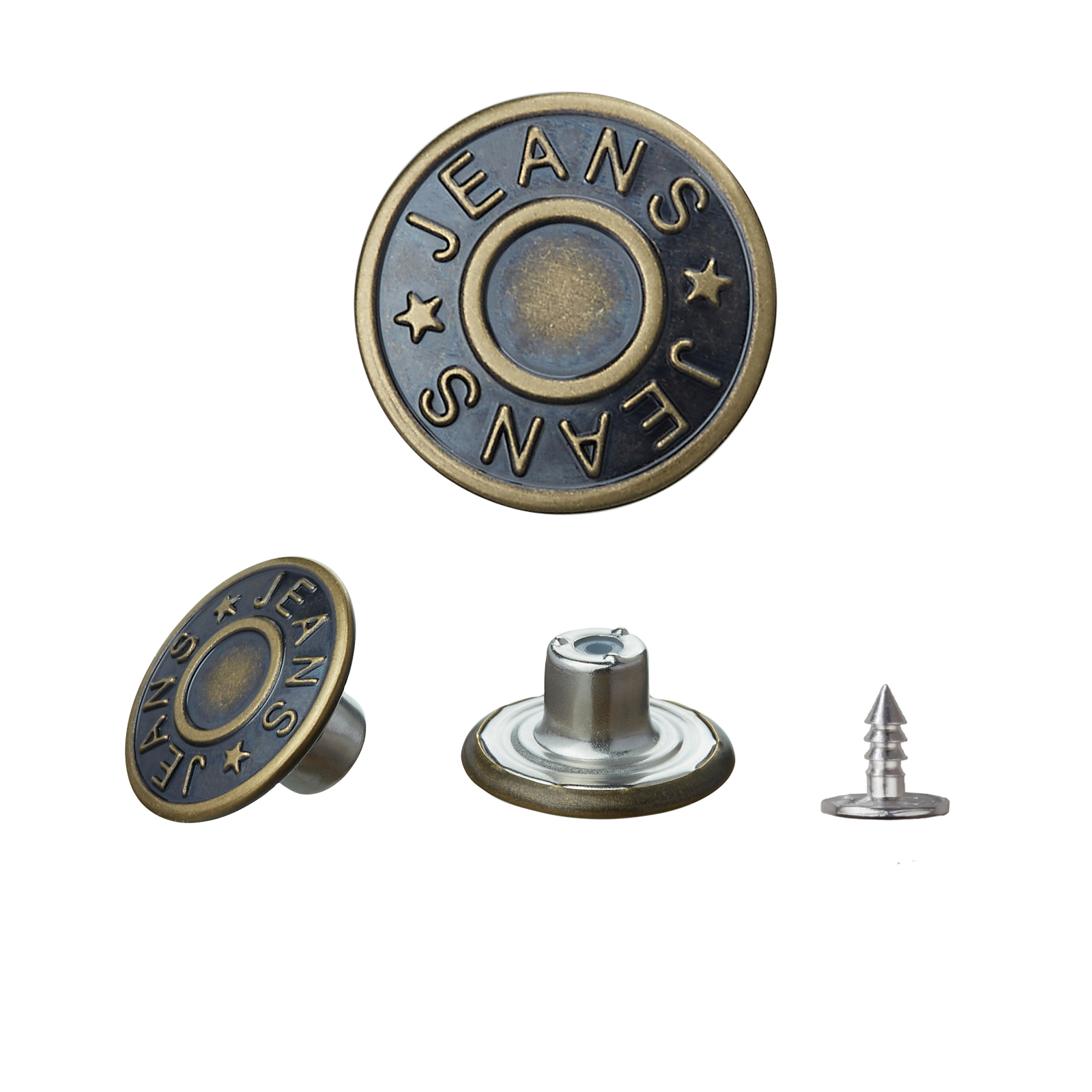 Пуговица джинсовая круглая с рельефной поверхностью, крепится на ткань через прокол маленьким саморезом.