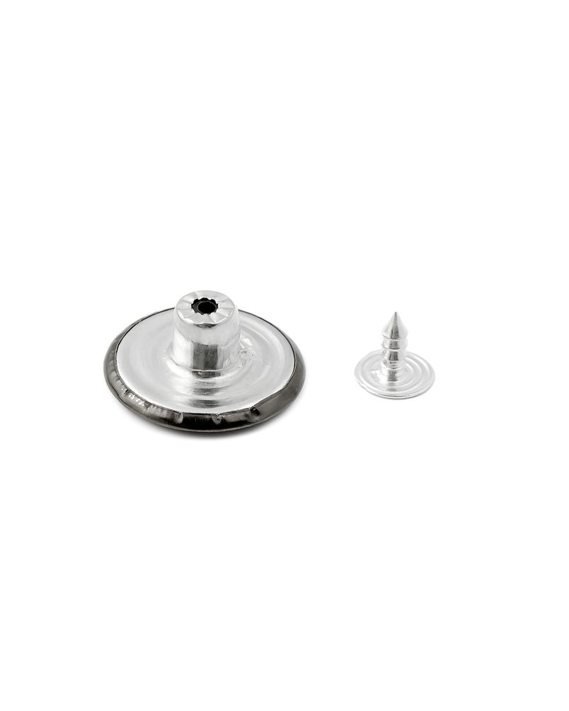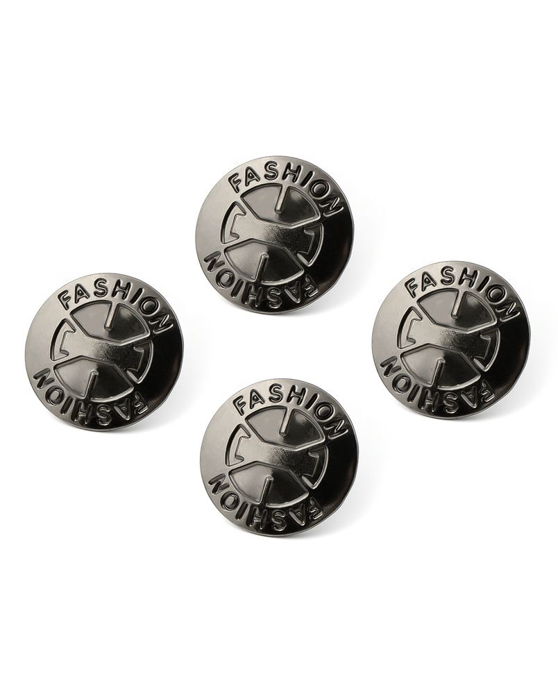 Пуговица джинсовая круглая с рельефной поверхностью, крепится на ткань через прокол маленьким саморезом.