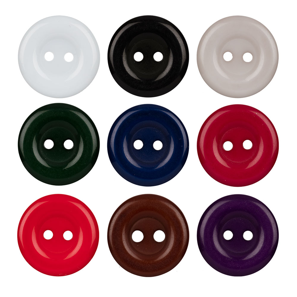 Пластиковая пуговица костюмная ТМ «BLITZ», артикул: DRN 0017 круглая на два прокола, диаметром 15 мм.