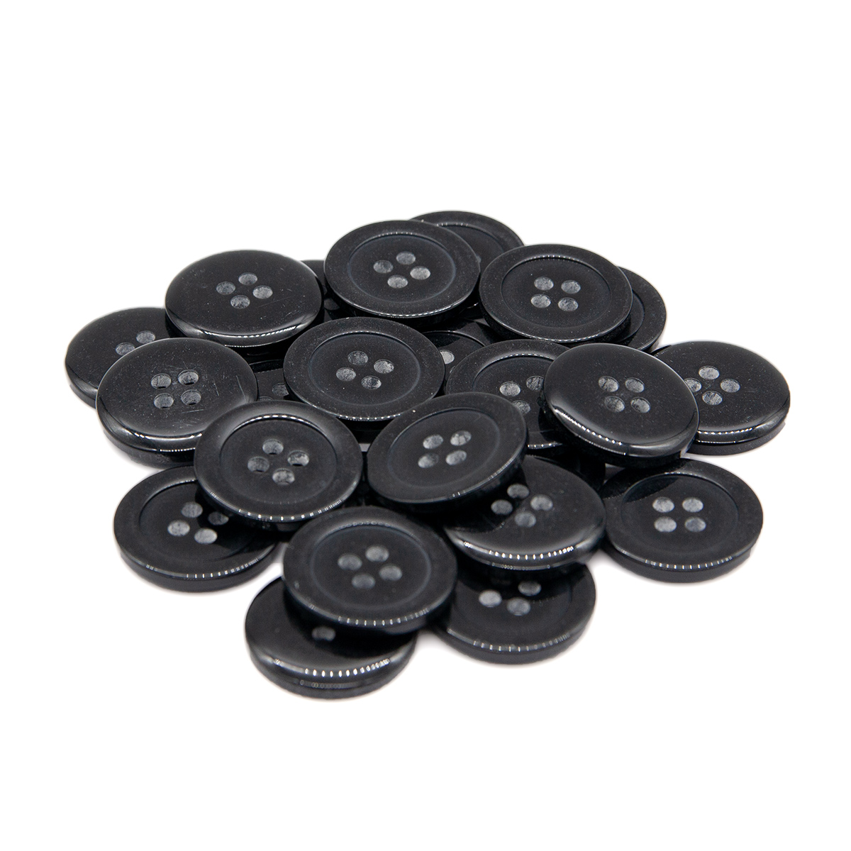 Пластиковая пуговица костюмная ТМ » Протос», на 4 прокола, круглой формы, диаметром 15, 20, 28 мм.