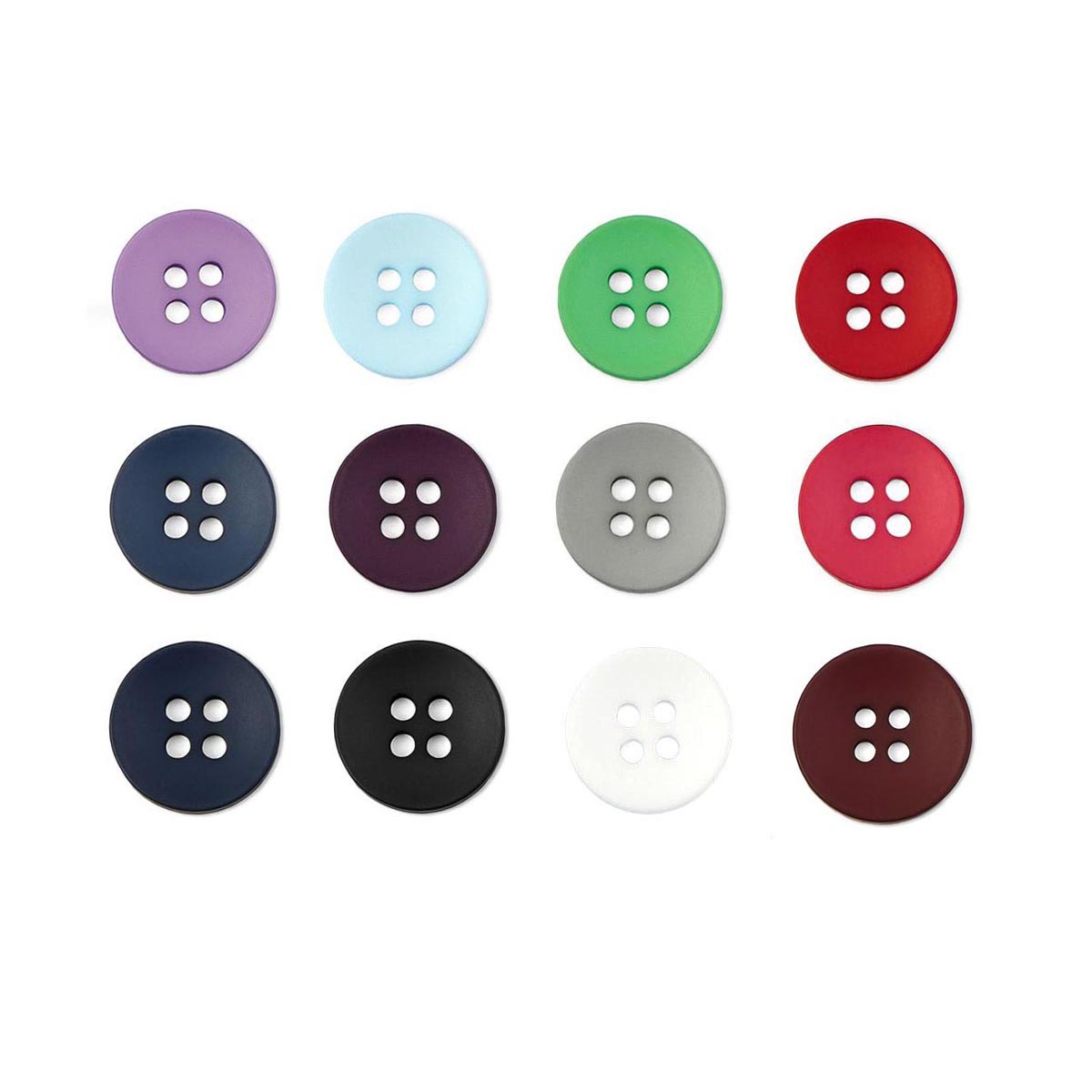 Пластиковая пуговица костюмная ТМ «Gamma», круглая на четыре прокола, диаметром 15 мм.
