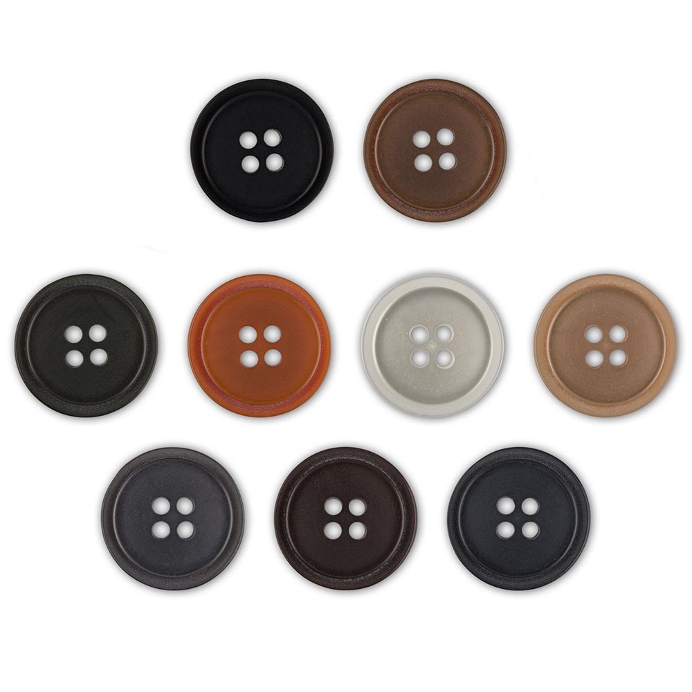 Пластиковая пуговица костюмная ТМ «Gamma», артикул: OXG 0002 круглой формы на четыре прокола, диаметром 15 мм.