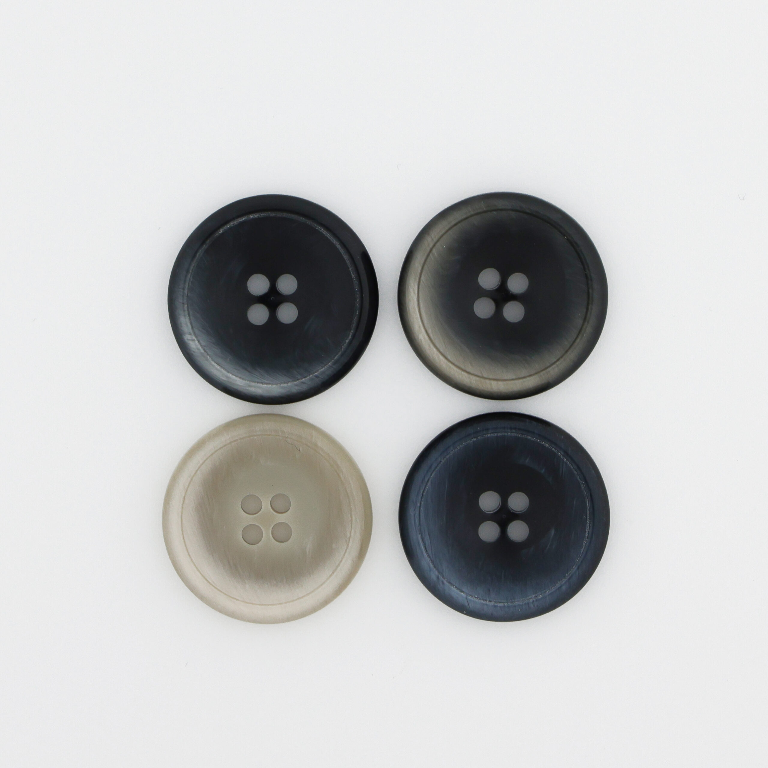 Пластиковая пуговица костюмная ТМ «Gamma», круглая на четыре прокола, диаметром 15 мм.