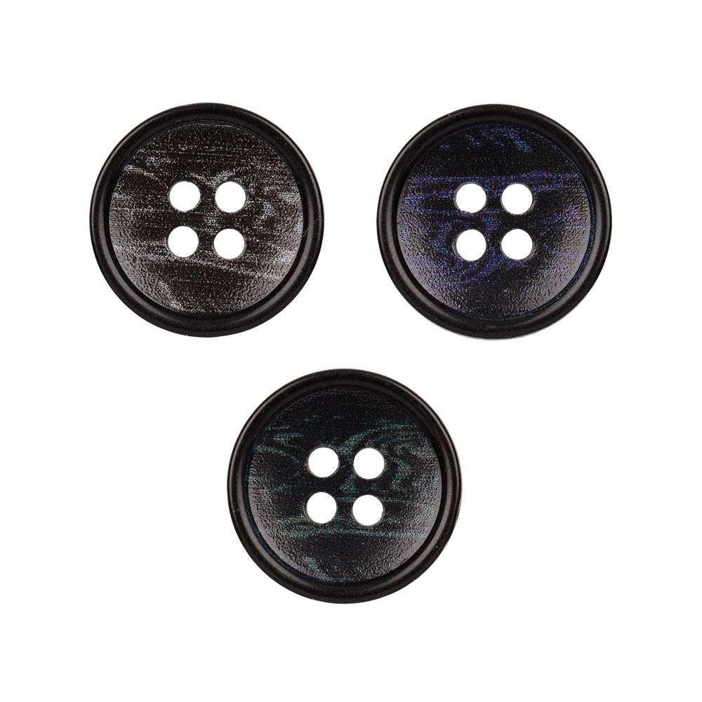 Пластиковая пуговица костюмная ТМ «BLITZ», артикул: DRN 0015 круглая на четыре прокола, диаметром 18 мм.