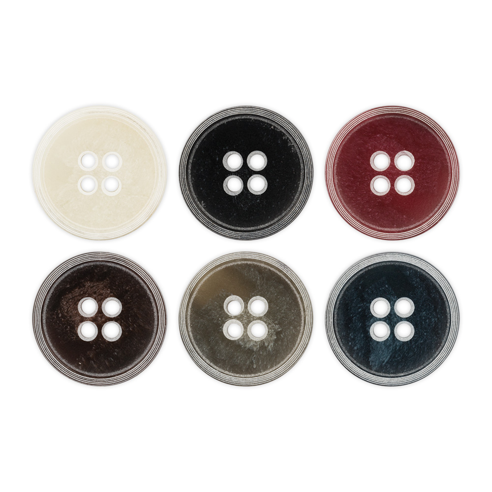 Пластиковая пуговица костюмная ТМ «Gamma», артикул: JEY 0022 круглой формы на четыре прокола, диаметром 19 мм.