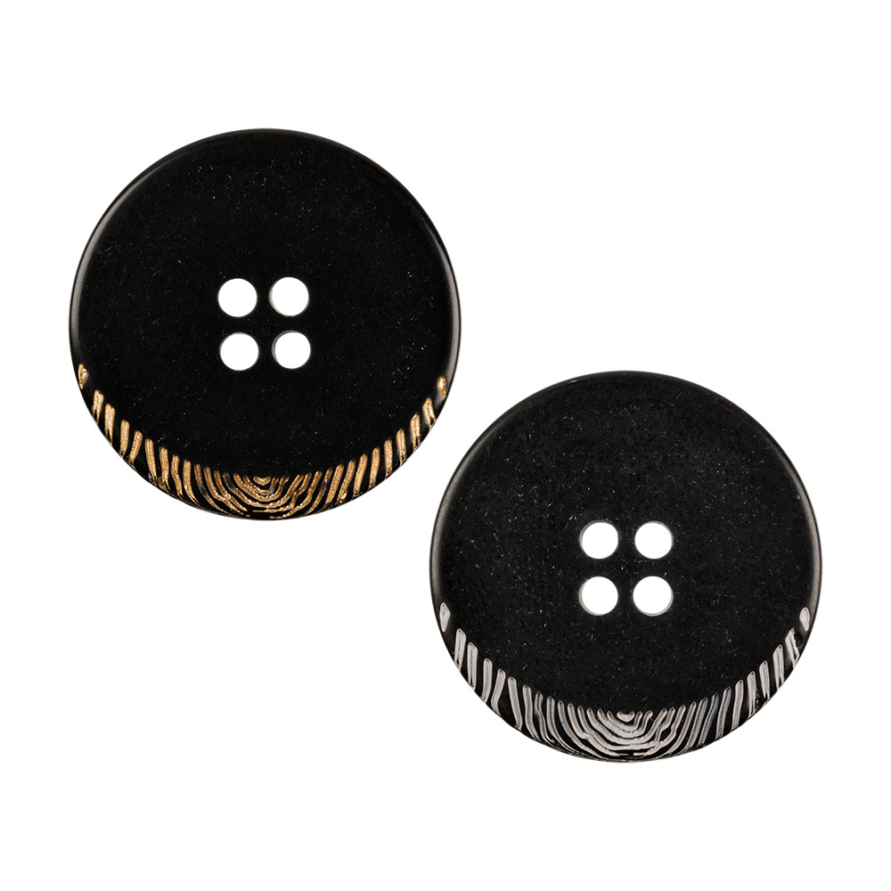 Пластиковая пуговица костюмная ТМ «Gamma», артикул: XPB 0004, круглая на четыре прокола, диаметром 24 мм.