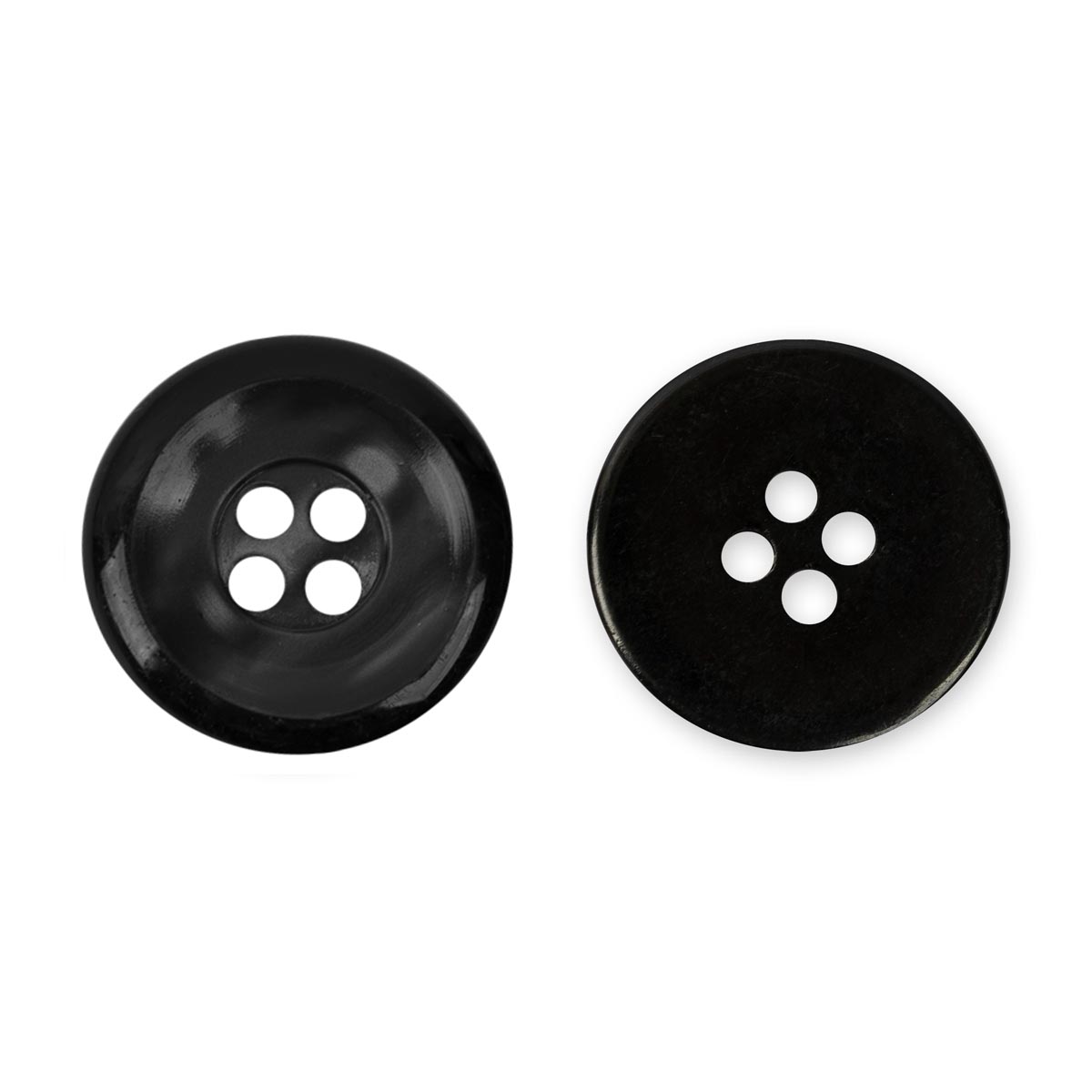 Пластиковая пуговица костюмная ТМ «BLITZ», артикул: DRN 0075 круглая на четыре прокола, диаметром 18 мм и 25 мм.