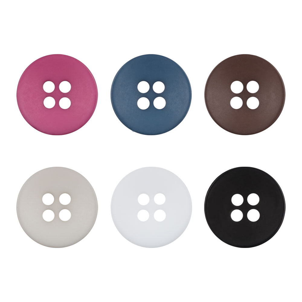 Пластиковая пуговица костюмная ТМ «BLITZ», артикул: DRN 0057 круглая на четыре прокола, диаметром 25 мм. Классическая с матовым покрытием.