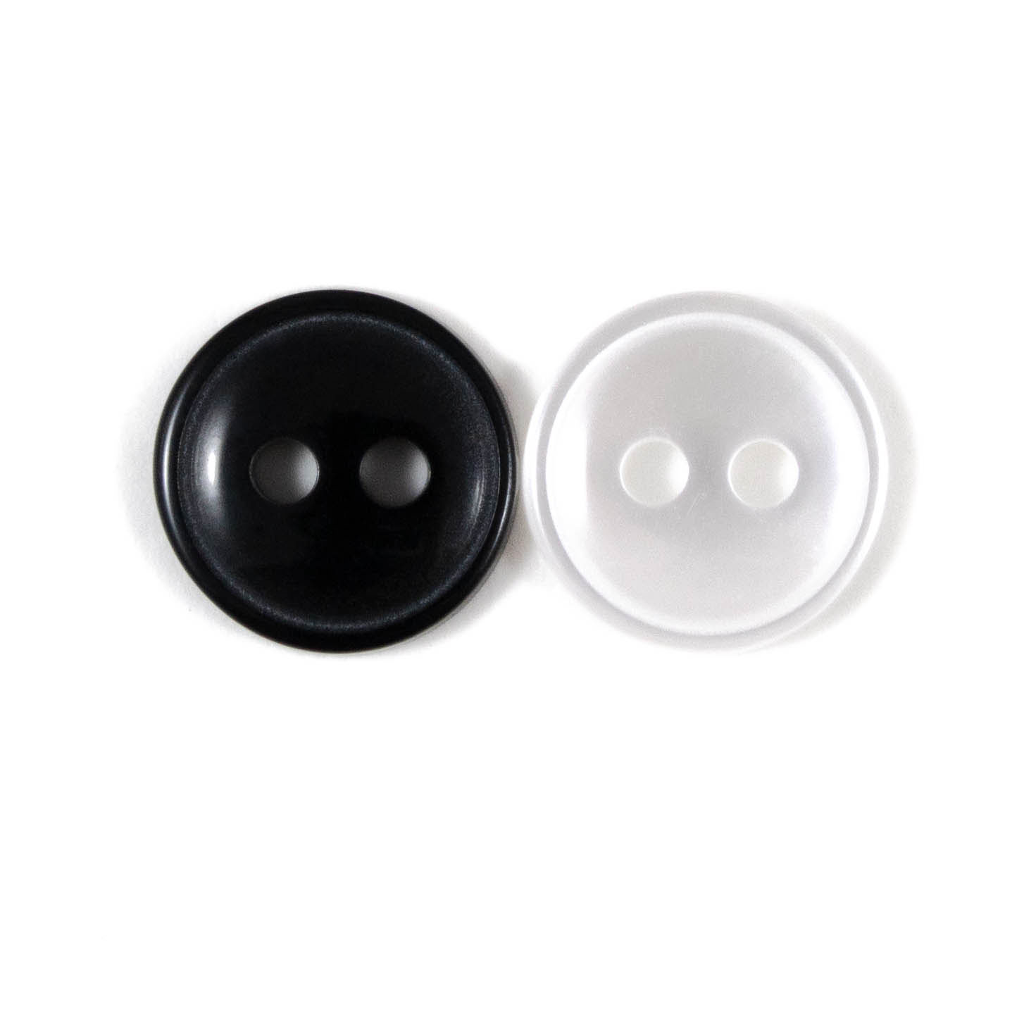 Пластиковая пуговица рубашечная ТМ «BLITZ», круглой формы на 2 прокола, диаметром 11 мм.