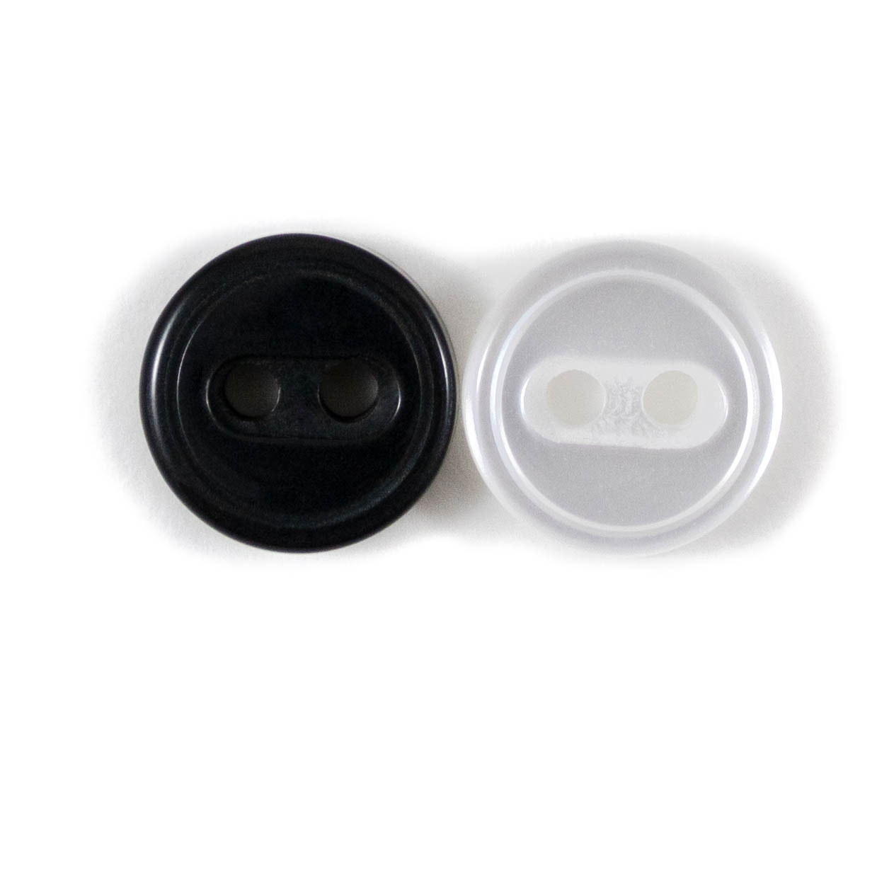 Пластиковая пуговица рубашечная ТМ «BLITZ», круглой формы на 2 прокола, диаметром 11 мм.