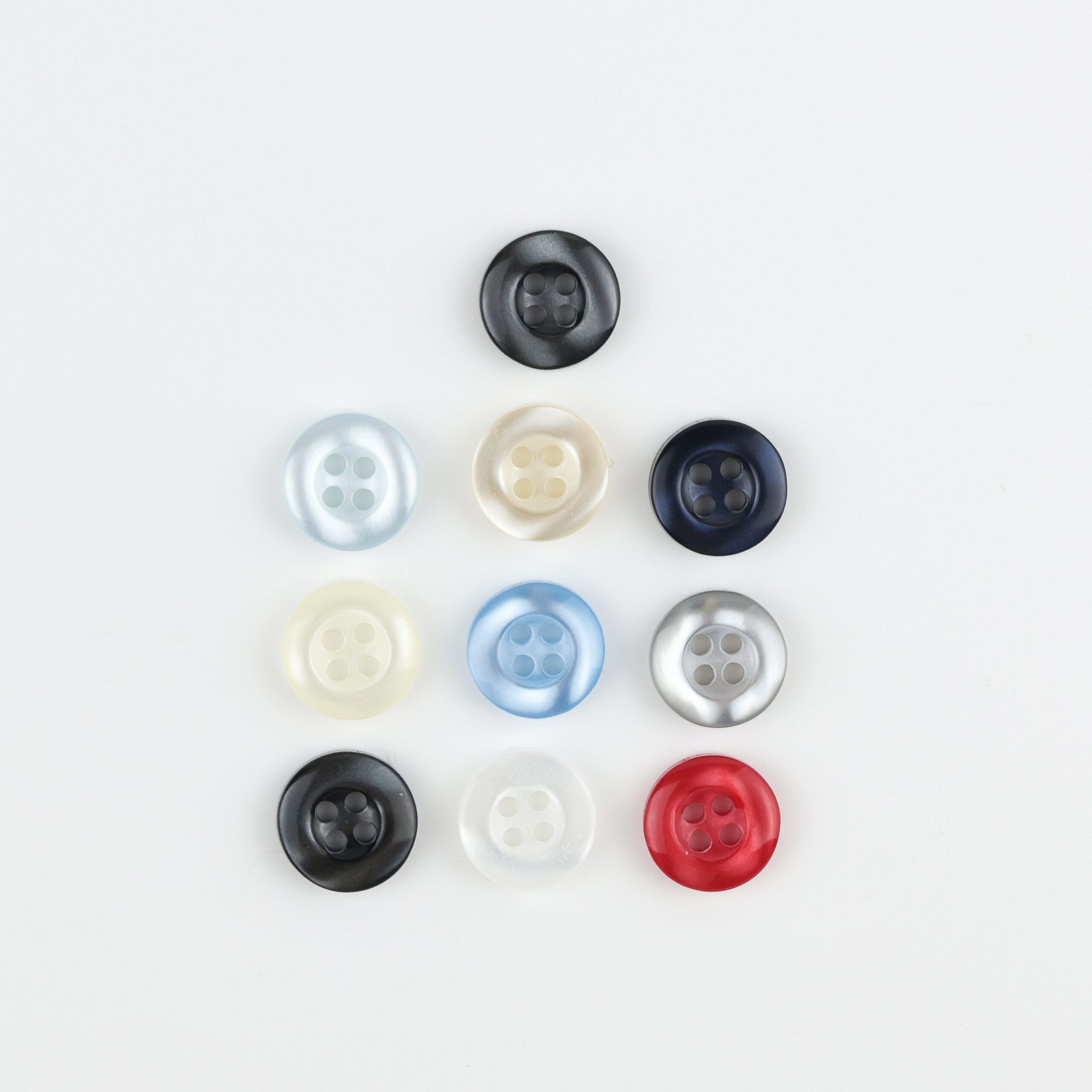 Пластиковая пуговица рубашечная ТМ «BLITZ», круглой формы на 4 прокола, диаметром 10 мм.