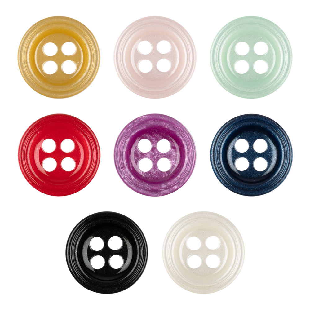 Пластиковая пуговица блузочная ТМ «BLITZ», артикул: DRN 0050, на 4 прокола, круглой формы, диаметром 11 мм.