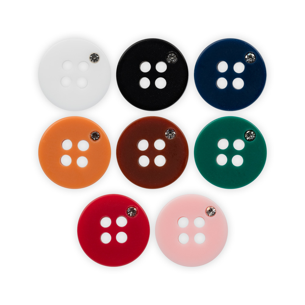 Пластиковая пуговица блузочная ТМ «Gamma», артикул: JEY 0008, на 4 прокола, круглой формы, диаметром 11 мм.