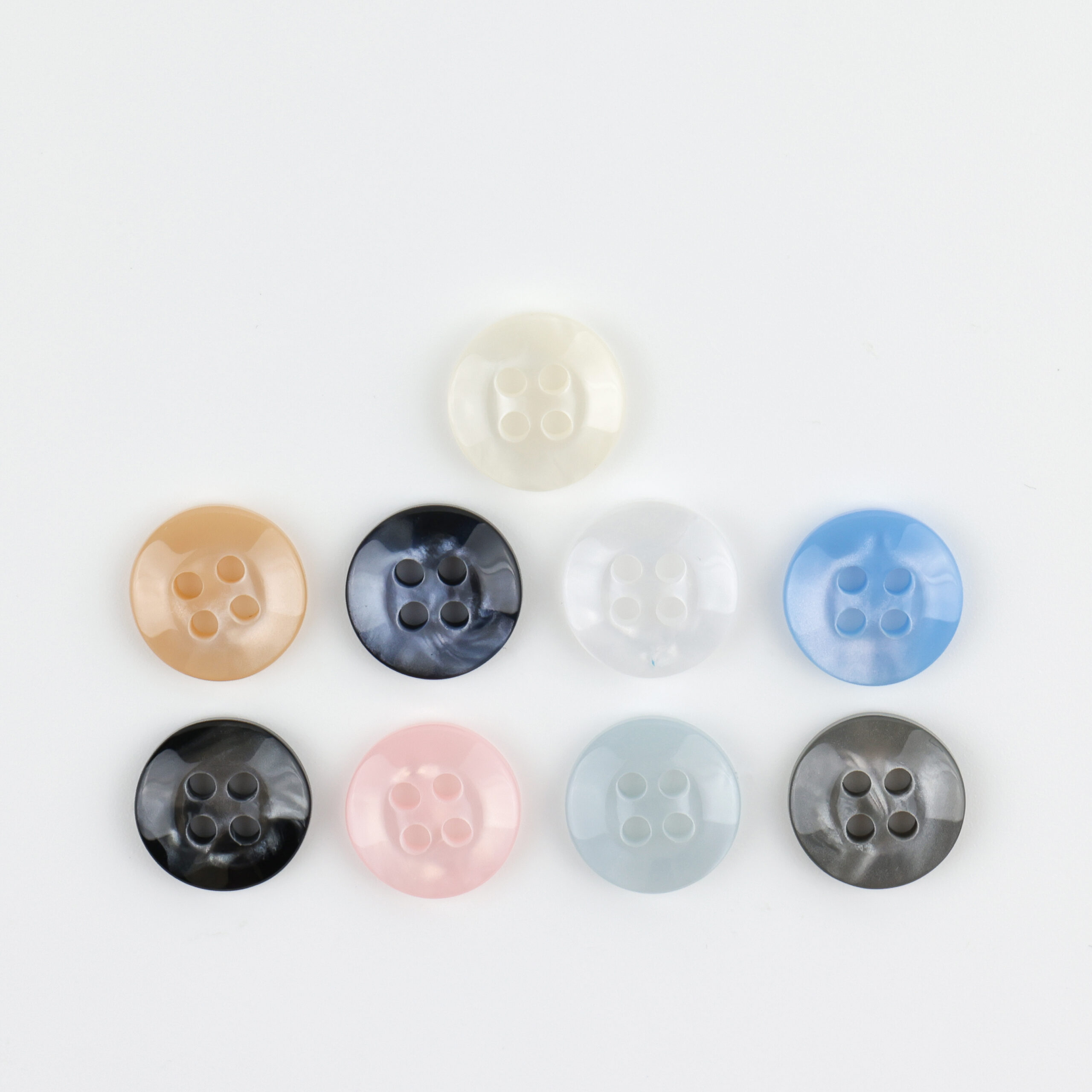 Пластиковая пуговица рубашечная ТМ «BLITZ», круглой формы на 4 прокола, диаметром 11 мм.