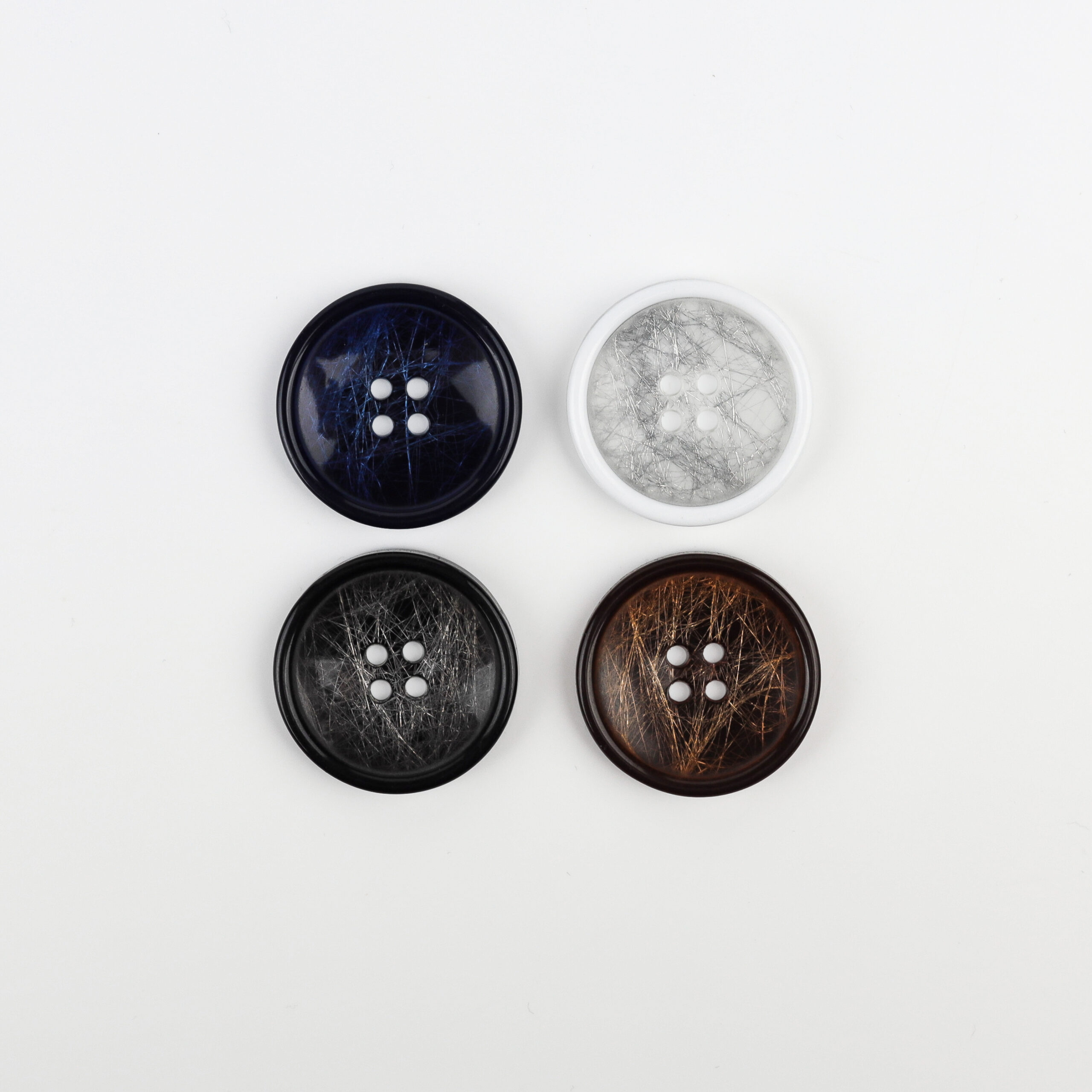 Пластиковая пуговица пальтовая «BLITZ», на четыре прокола, круглой формы, диаметром 15 мм.