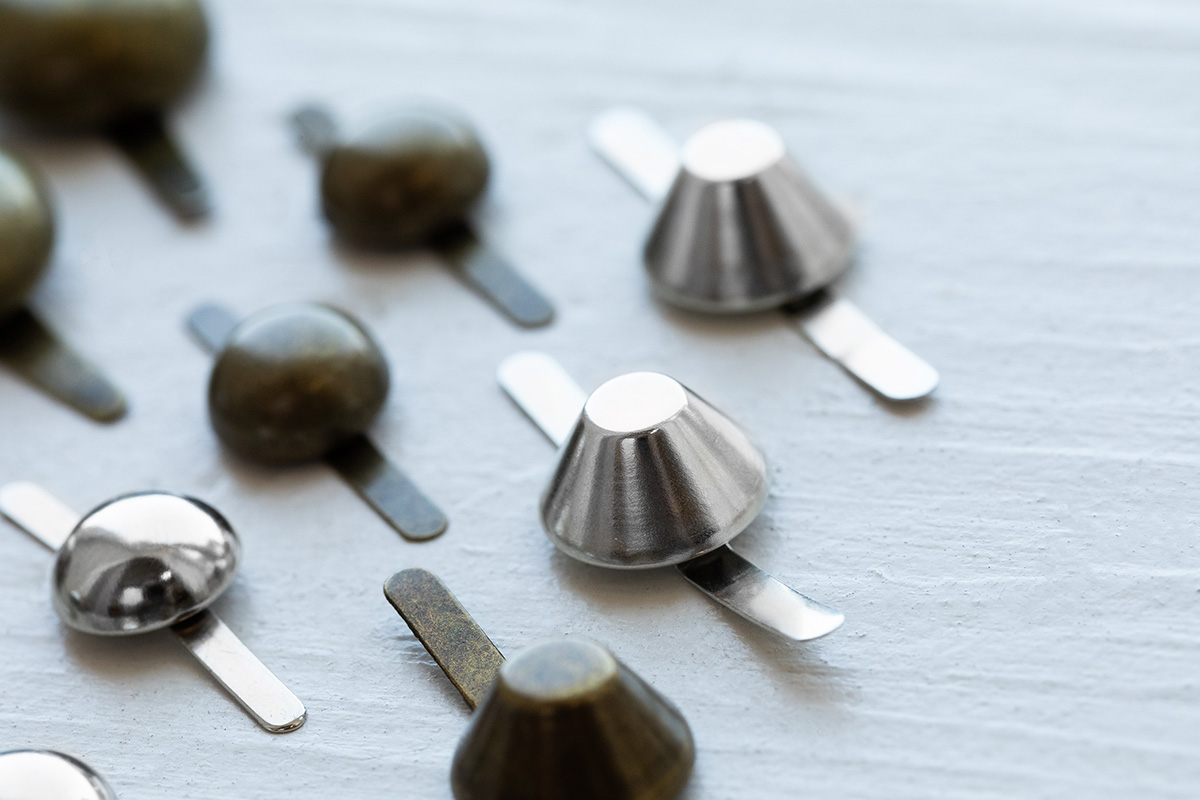 Ножки для дна сумки металлические в форме конуса. Ножки или как их еще называют пукли для дна сумки применяются для защиты дна сумки. Использование ножек для сумки защитит дно от царапин, потертостей, так как сумку приходится часто ставить на различные поверхности, а также на землю. Надежные ножки для дна сумки благодаря их различным размерам и цветам никеля и бронзы придадут любой сумке завершающий «профессиональный» штрих.
