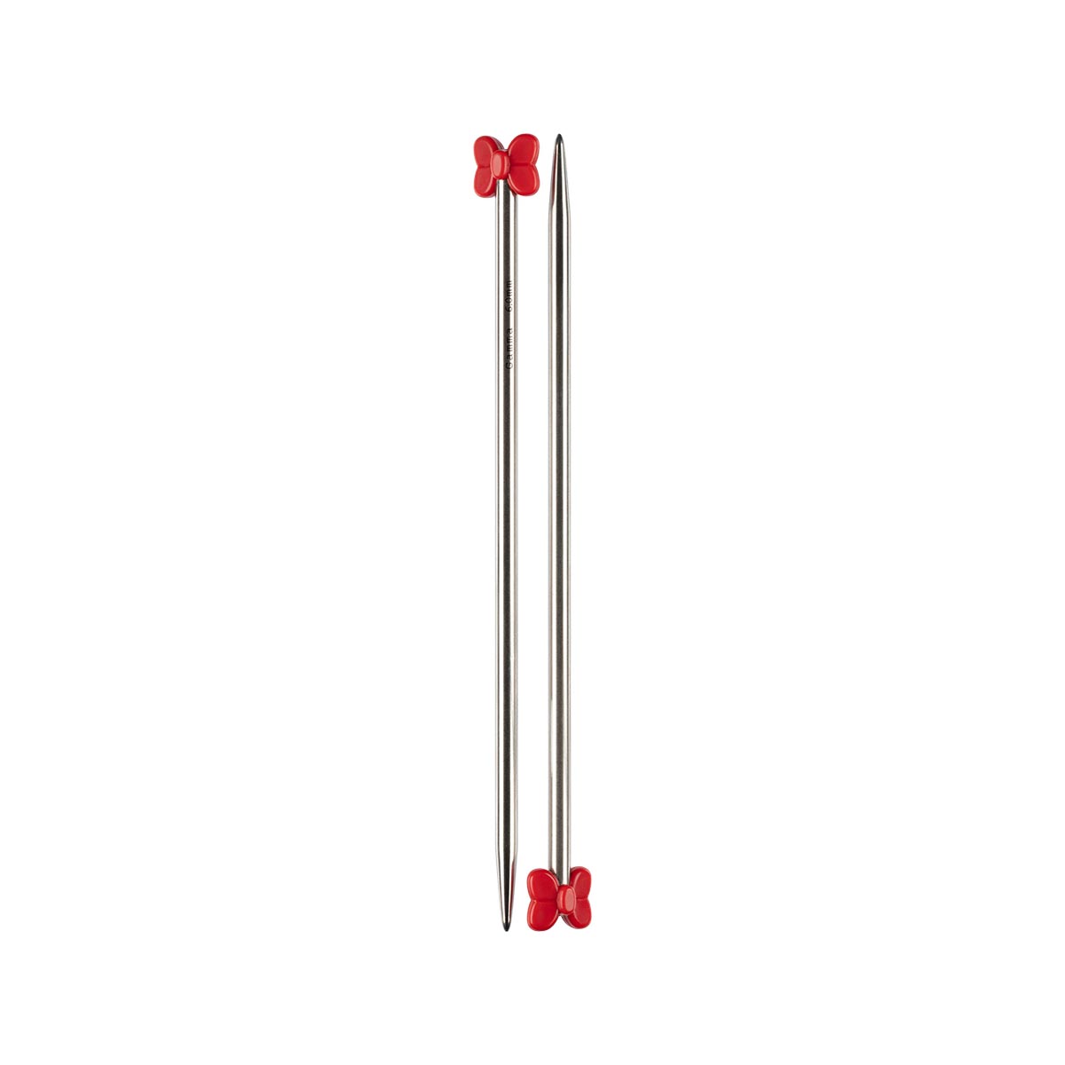 Спицы прочные, легкие, гладкие, удобные в использовании. На каждой спице выгравирован диаметр, наконечник имеет форму цветного бантика.