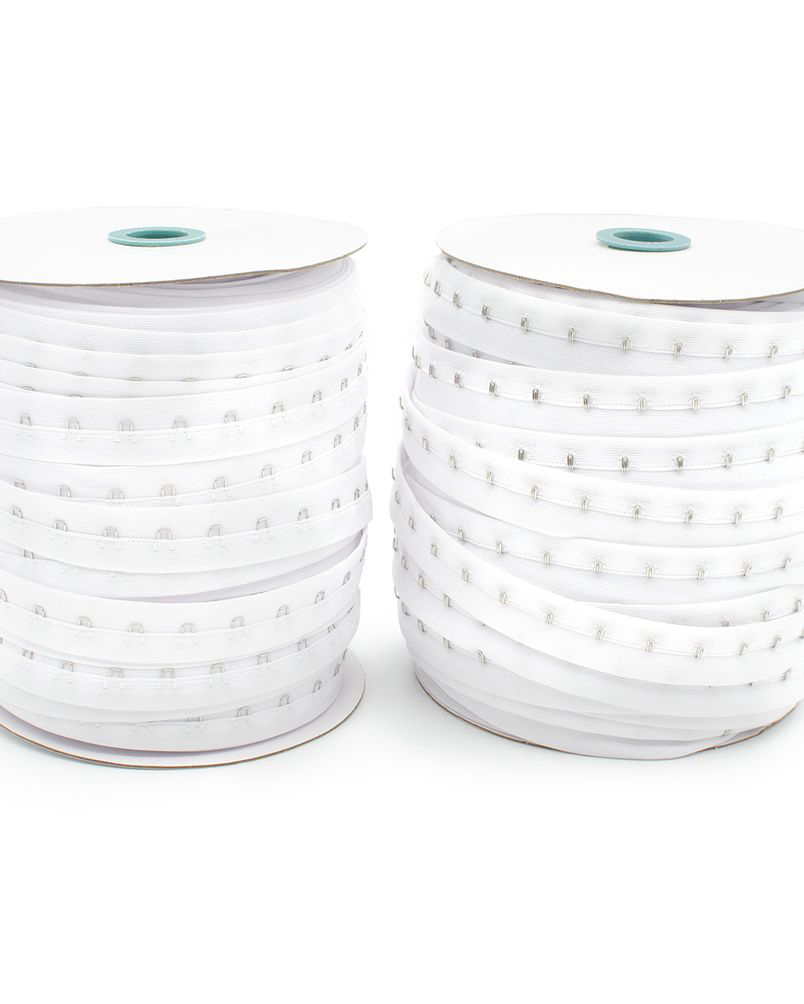 Тесьма с крючками и петлями представляет собой однорядную застежку на ленте. Используется при пошиве нижнего женского белья, корсетов, корсажных платьев, оригинальной одежды. Тесьма удобна для вшивания в изделия. Крючки предназначены для создания потайной застежки, которая не должна быть видна с лицевой стороны изделия.