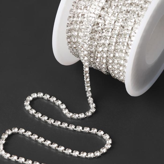 Стразовая цепочка состоит из последовательно закрепленных страз в цапах, которые скреплены между собой подвижной металлической пластинкой. Стразы выполнены из высококачественного стекла, имеющие машинную огранку и полировку, поэтому стразы имеют повышенную прозрачность. Благодаря такому качеству камни в стразовой цепи дают много блеска и мерцания, не хуже чем настоящие кристаллы.