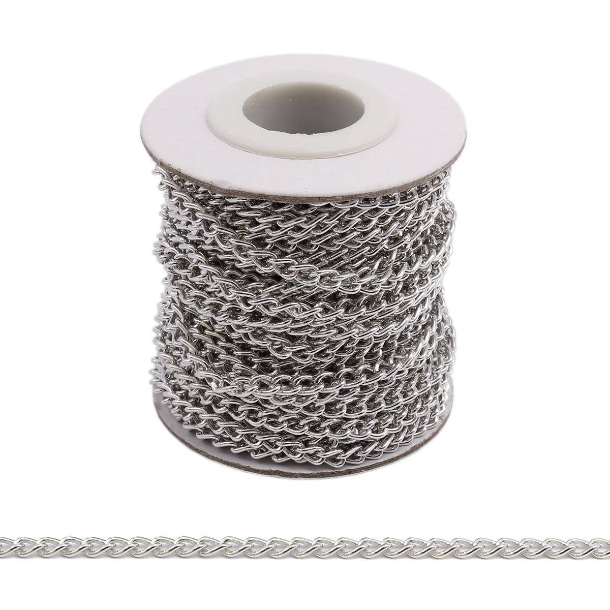 Алюминиевая цепочка, цвет – серебро. Стильный прочный аксессуар для декора обуви, одежды, сумок и многого другого, панцирное плетение, звено средней толщины. Длина звена 5,0 мм, ширина 3,6 мм. Общая длина 10 м. Красивая и качественная фурнитура делает вещи привлекательными и долговечными.