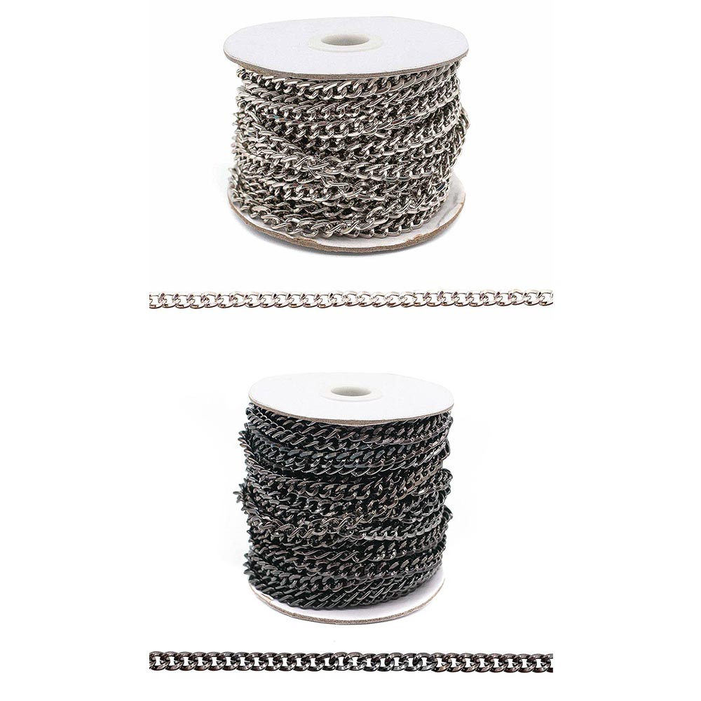 Стальная цепочка. Стильный прочный аксессуар для декора панцирного плетения. Длина звена 6,2 мм, ширина 4,8 мм. Общая длина 10 м. Красивая и качественная фурнитура делает вещи привлекательными и долговечными.