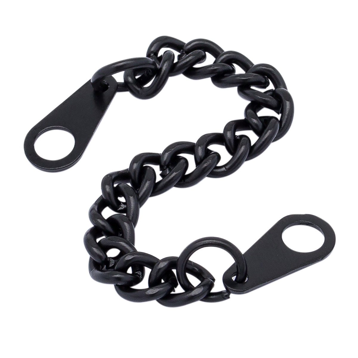 Вешалки-цепочки с гладким звеном и концевиками (колечками для пришивания) в форме капли. Изготовлены из сплава металлов с гальваническим покрытием. Подходят для всех видов верхней одежды.
