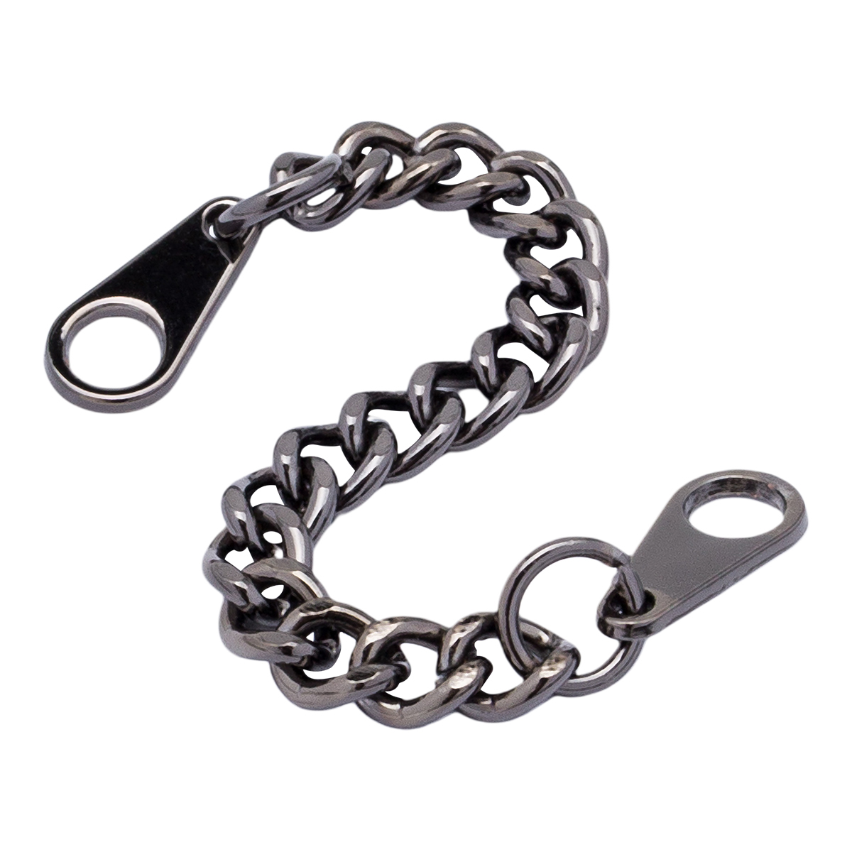 Вешалки-цепочки с гладким звеном и концевиками (колечками для пришивания) в форме капли. Изготовлены из сплава металлов с гальваническим покрытием. Подходят для всех видов верхней одежды.
